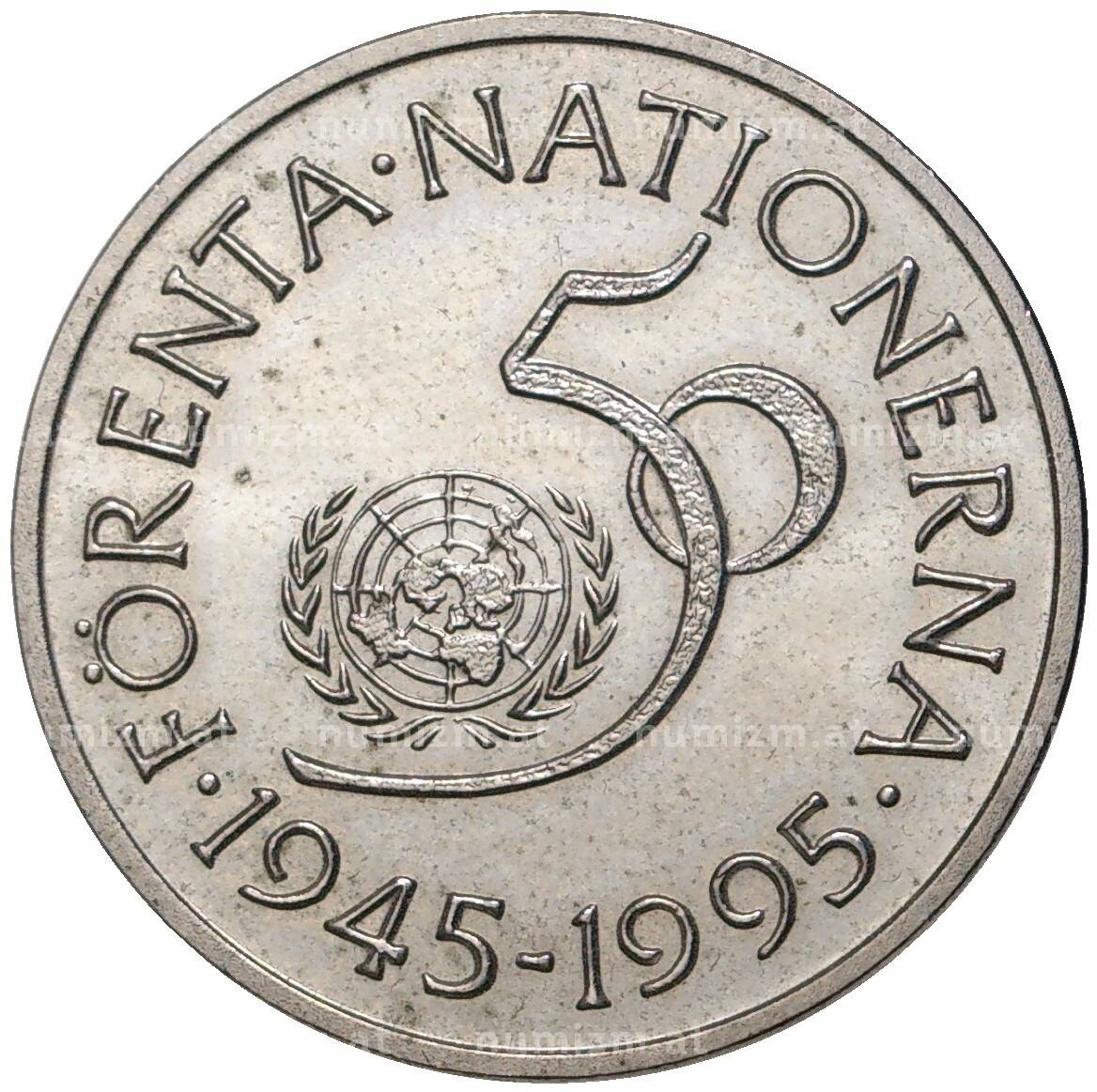 Купить 5 крон 1995 года Швеция «50 лет ООН» по привлекательной цене можно в нашем интернет-магазине — Вам достаточно оформить заказ на сайте. Все монеты, представленные в каталоге, находятся в наличии на нашем складе.