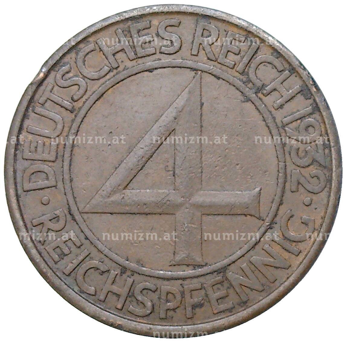 Монета 4 рейхспфеннига 1932 года А Германия (Артикул: M2-59417): подробные характеристики, качественные фотографии в высоком разрешении, низкая цена.