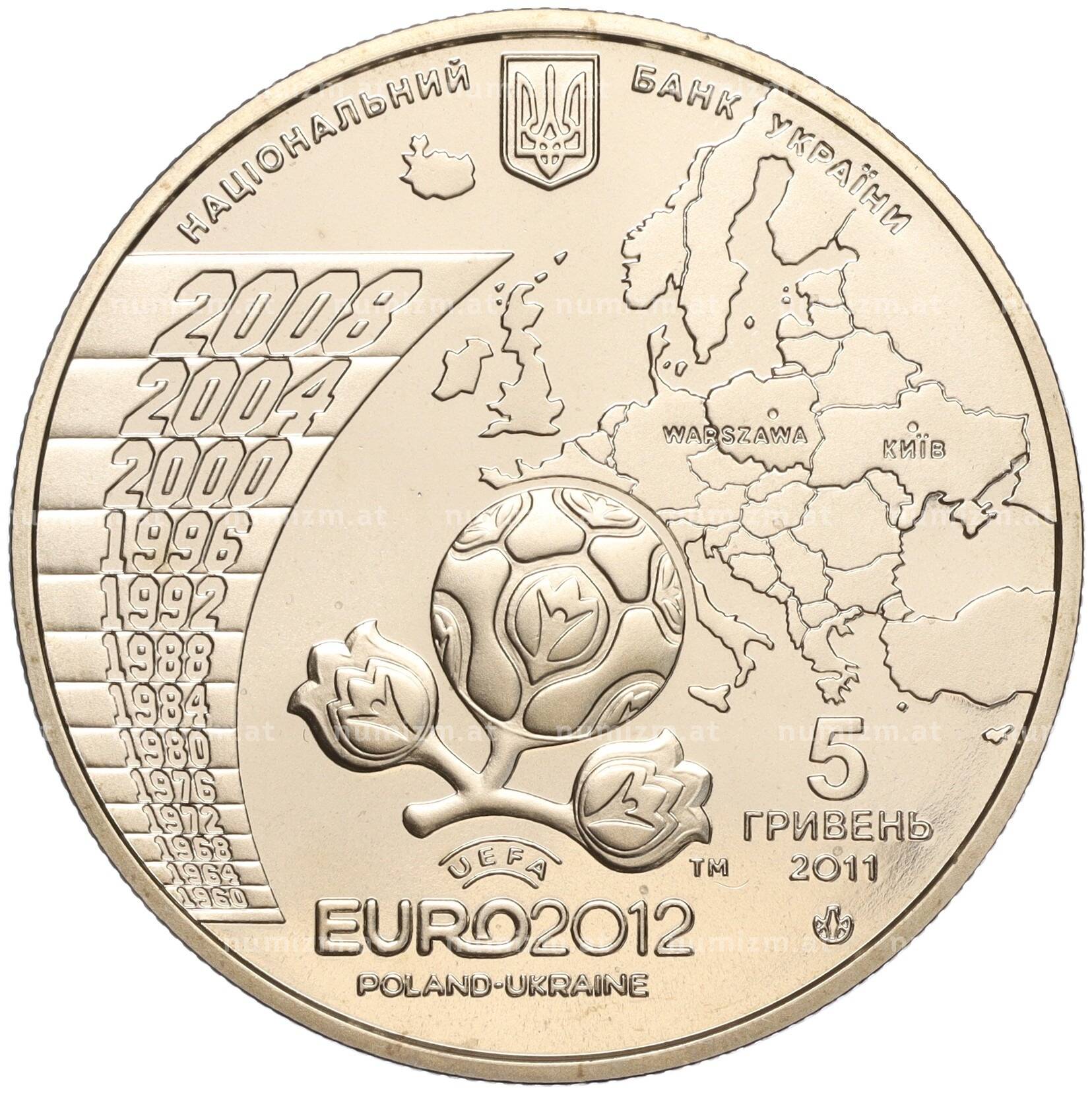 Купить 5 гривен 2011 года Украина «Финальный турнир чемпионата Европы по футболу 2012» по привлекательной цене можно в нашем интернет-магазине — Вам достаточно оформить заказ на сайте. Все монеты, представленные в каталоге, находятся в наличии на нашем складе.