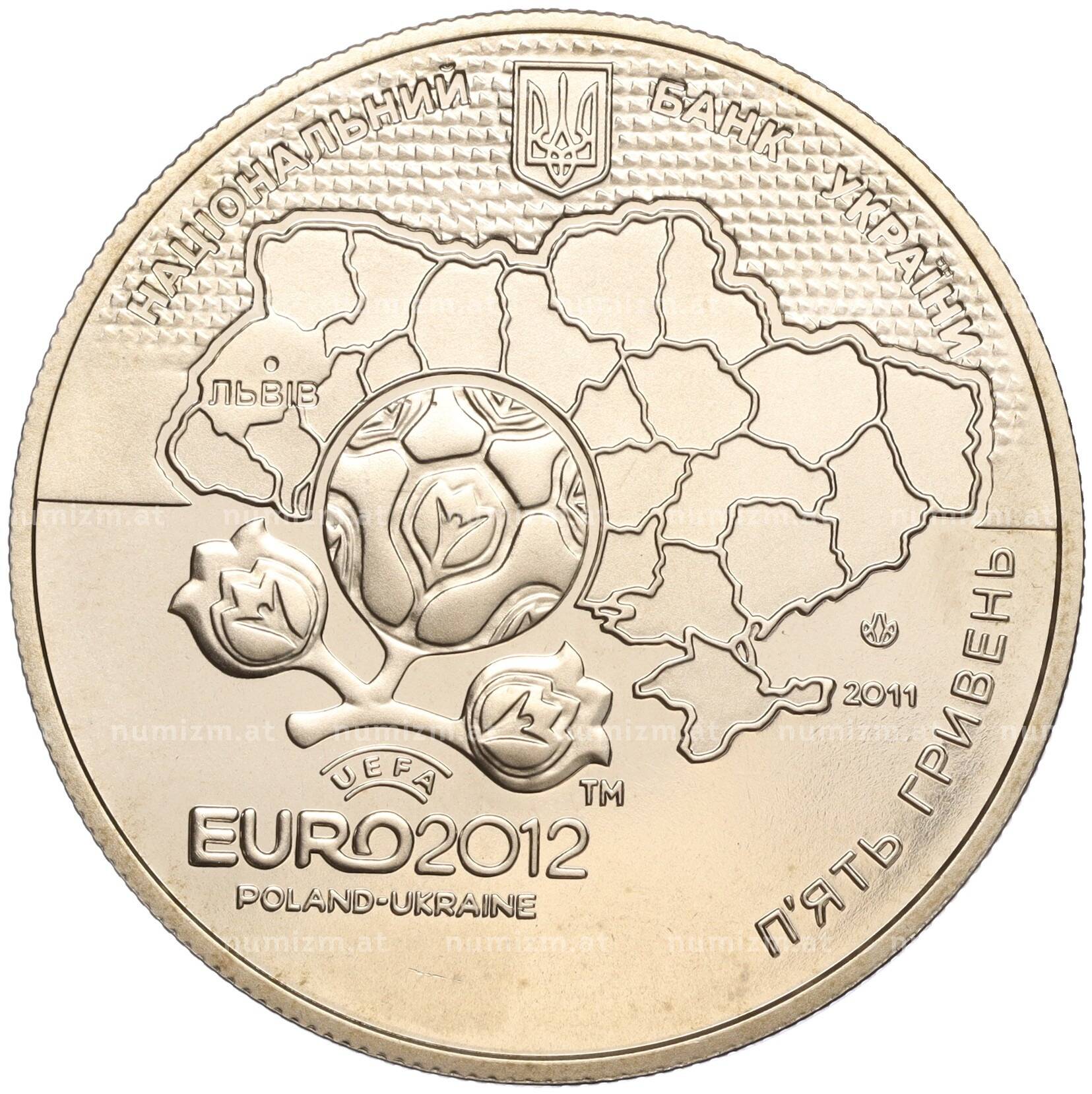 20.01.2025Интернет магазин «Нумизмат» предлагает приобрести 5 гривен 2011 года Украина «Финальный турнир чемпионата Европы по футболу 2012 — Л ьвов».