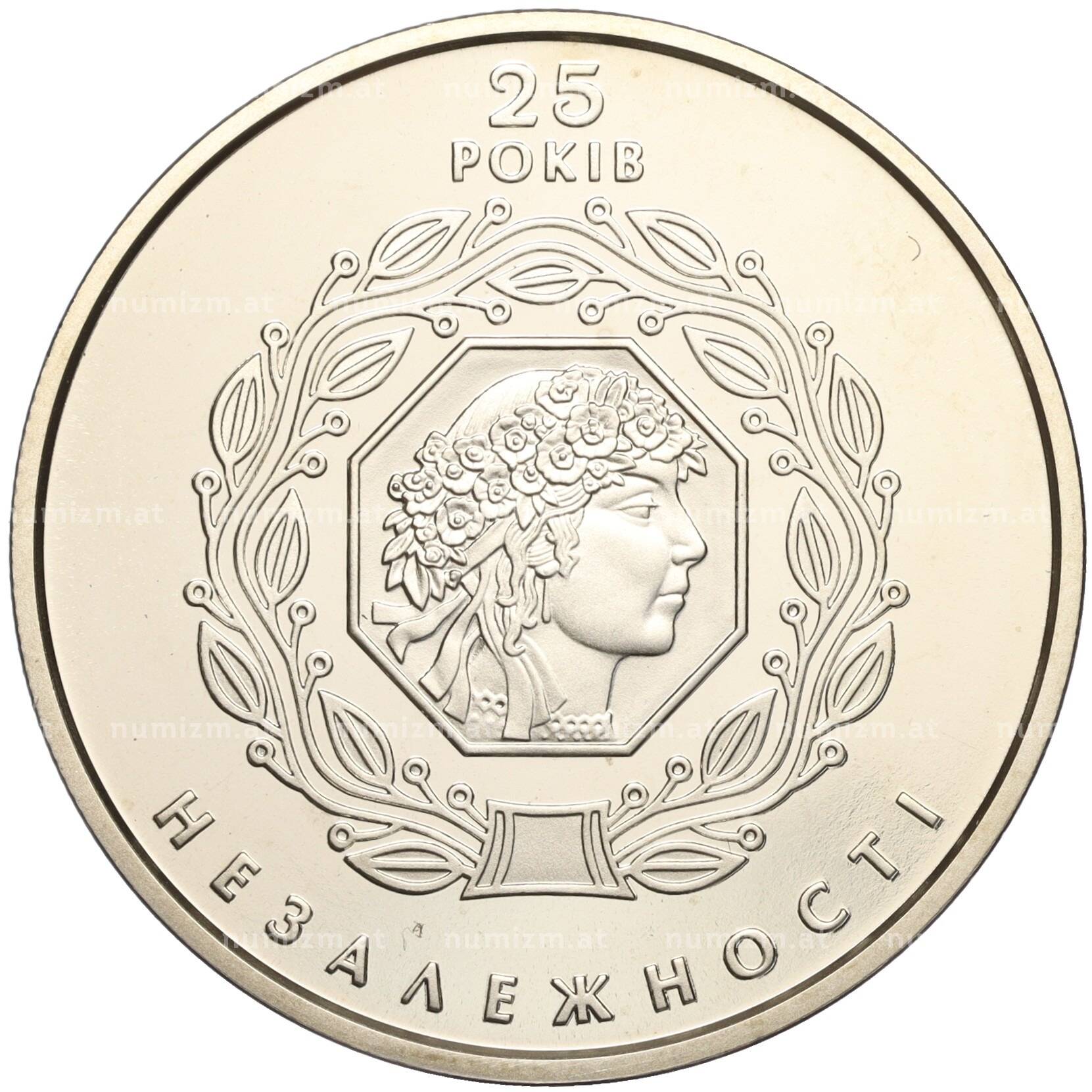 20.01.2025Интернет магазин «Нумизмат» предлагает приобрести 5 гривен 2016 года Украина «25 лет независимости Украины».