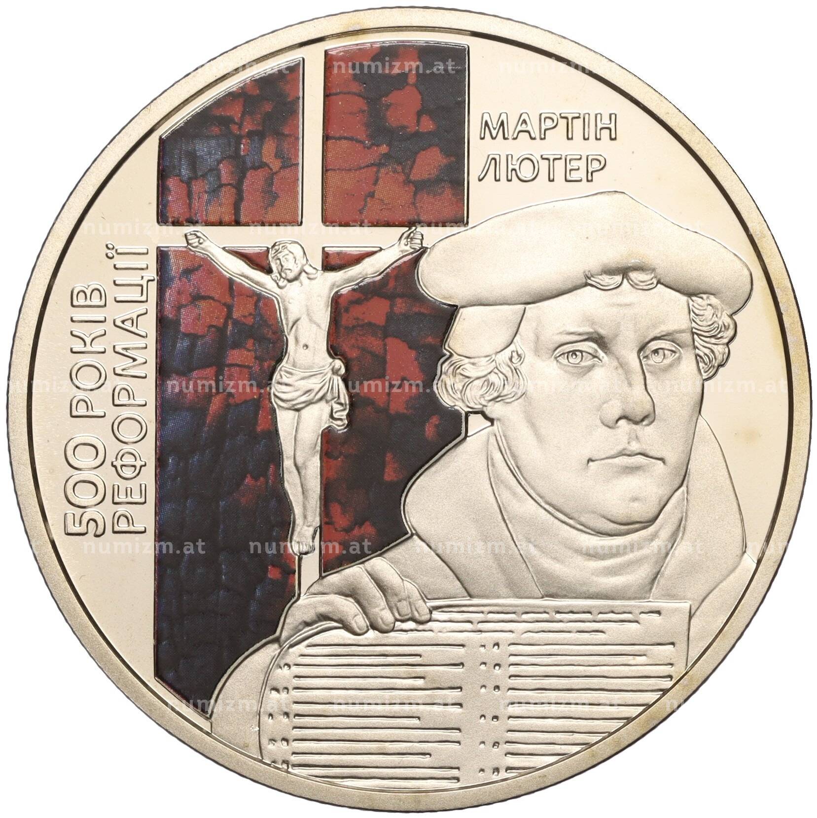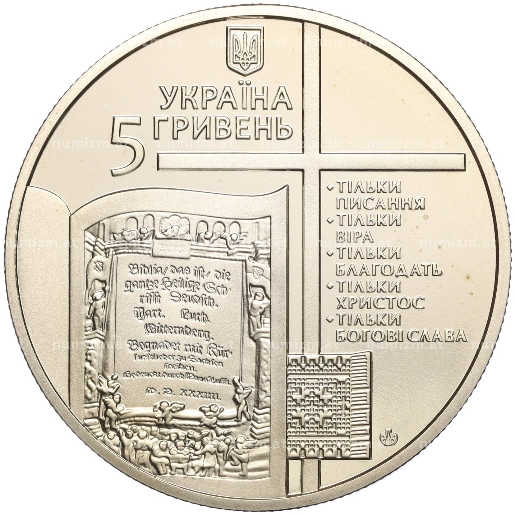 20.01.2025Интернет магазин «Нумизмат» предлагает приобрести 5 гривен 2017 года Украина «500 лет сочинению Мартина Лютера 95 тезисов».
