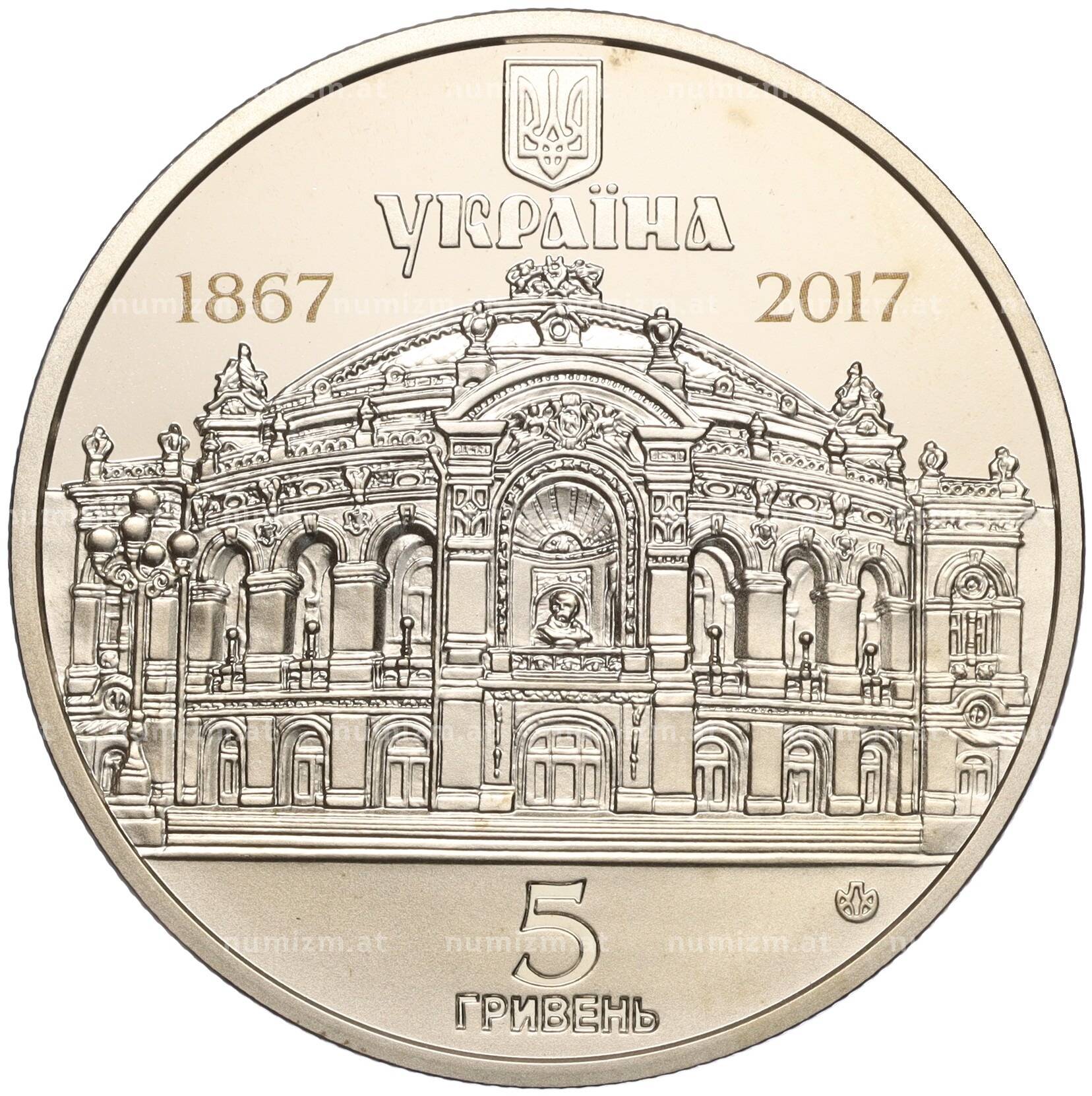 20.01.2025Интернет магазин «Нумизмат» предлагает приобрести 5 гривен 2017 года Украина «150 лет Национальному академическому театру Украины».