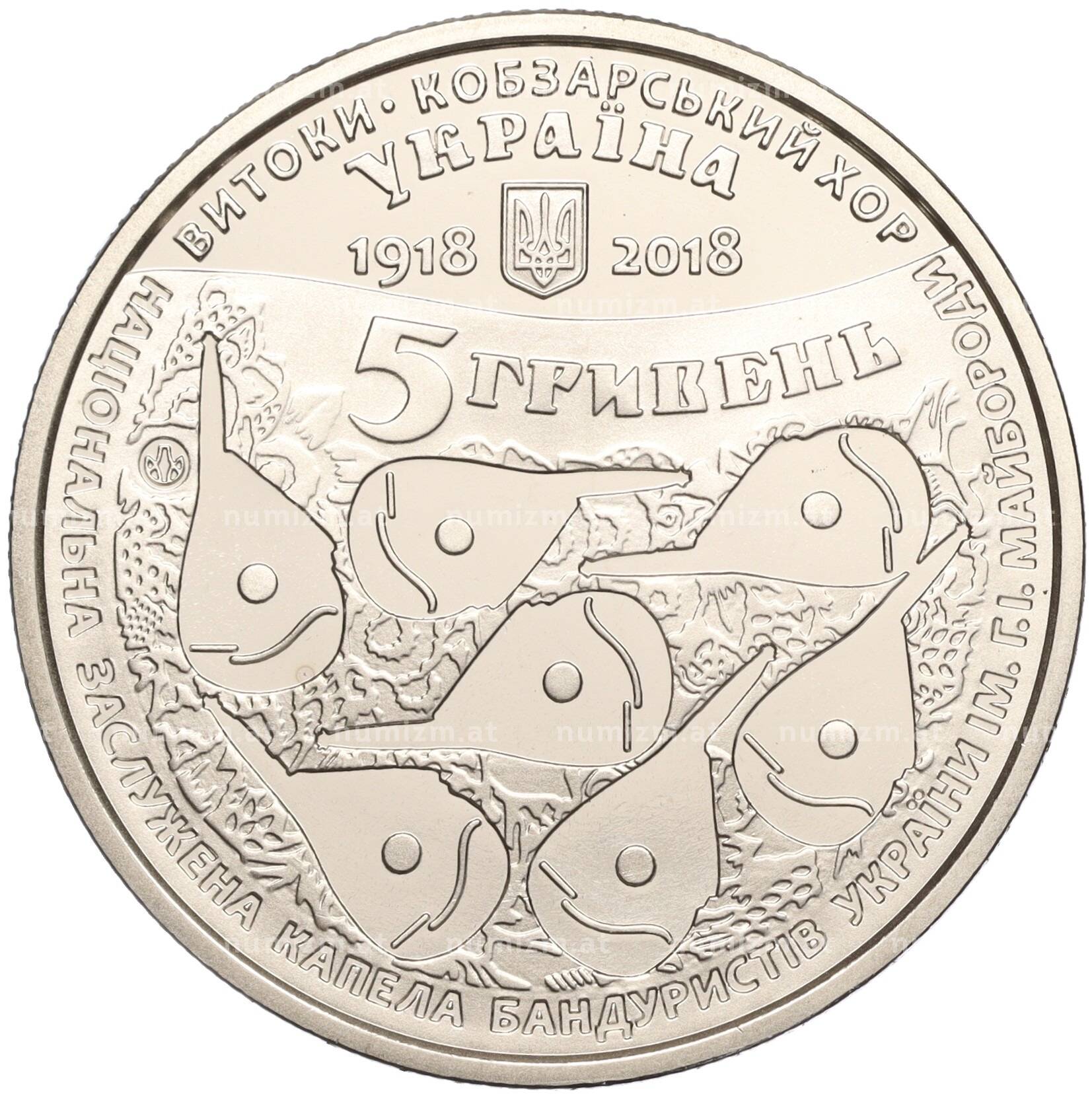 20.01.2025Интернет магазин «Нумизмат» предлагает приобрести 5 гривен 2018 года Украина «100 лет созданию Кобзарского хора».