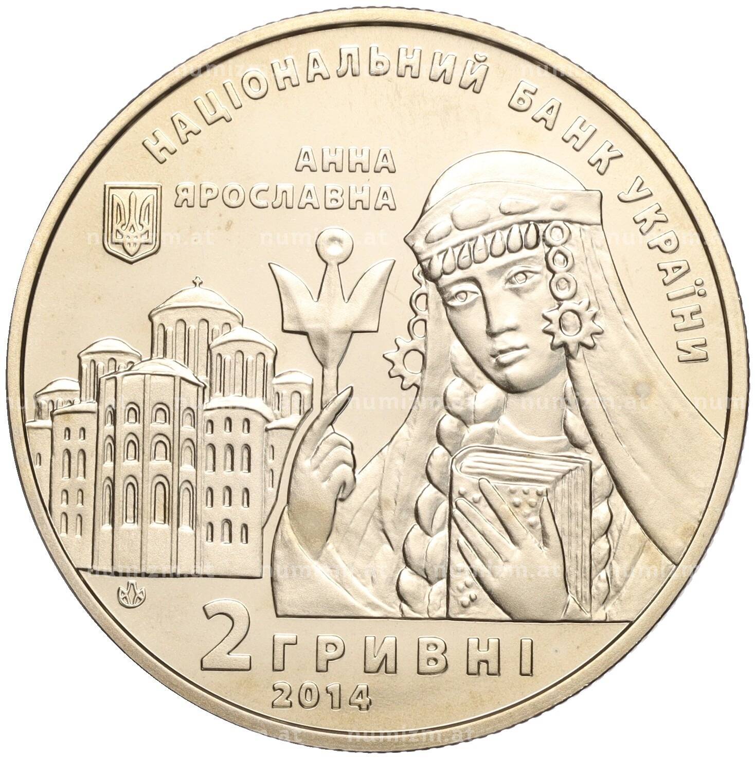 Купить 2 гривны 2014 года Украина «Анна Ярославна» по привлекательной цене можно в нашем интернет-магазине — Вам достаточно оформить заказ на сайте. Все монеты, представленные в каталоге, находятся в наличии на нашем складе.