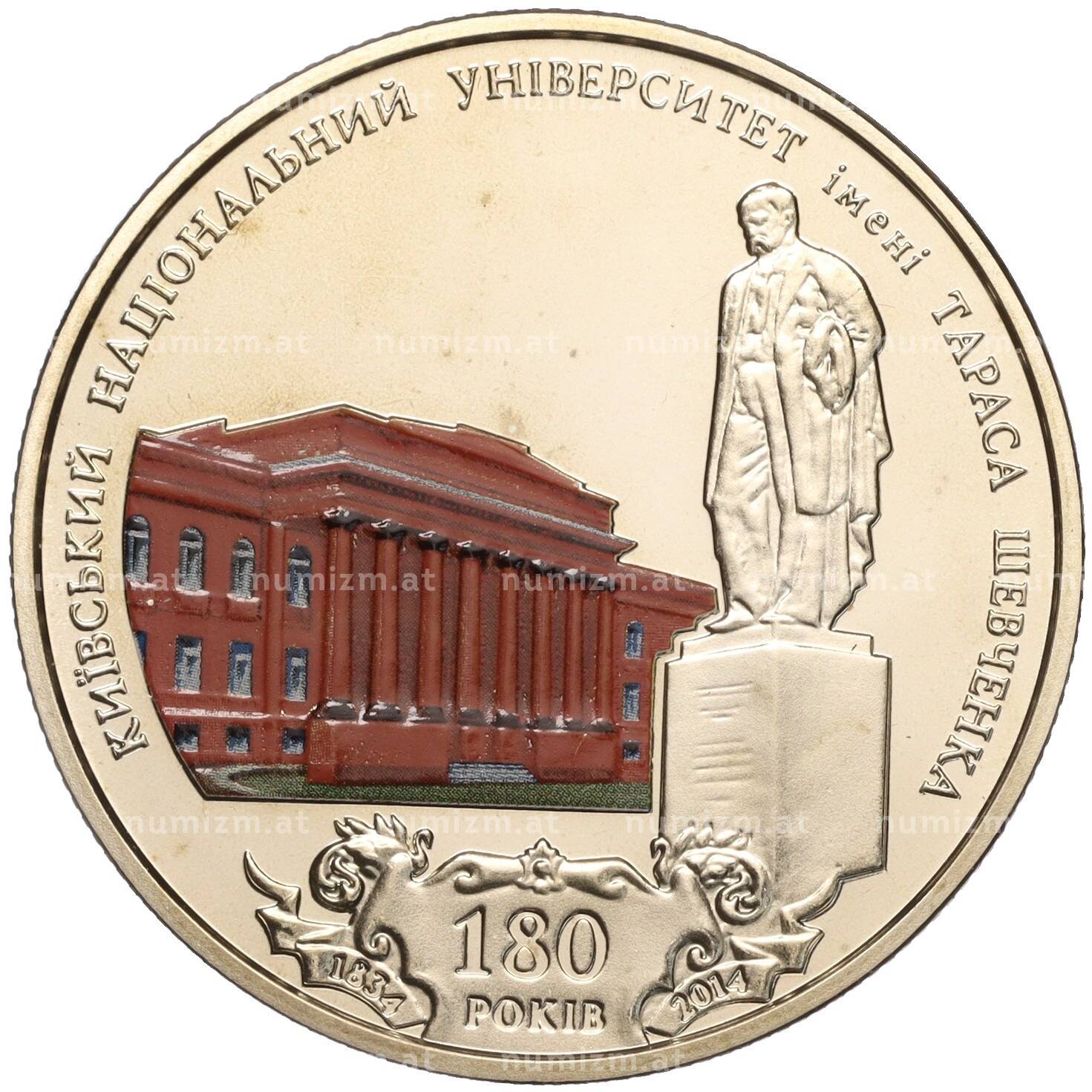 Купить 2 гривны 2014 года Украина «180 лет Киевскому национальному университету имени Тараса Шевченко» по привлекательной цене можно в нашем интернет-магазине — Вам достаточно оформить заказ на сайте. Все монеты, представленные в каталоге, находятся в наличии на нашем складе.