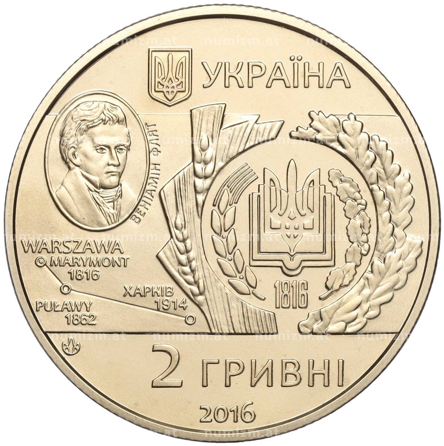 20.01.2025Интернет магазин «Нумизмат» предлагает приобрести 2 гривны 2016 года Украина «200 лет Харьковскому национальному аграрному университету имени Докучаева».