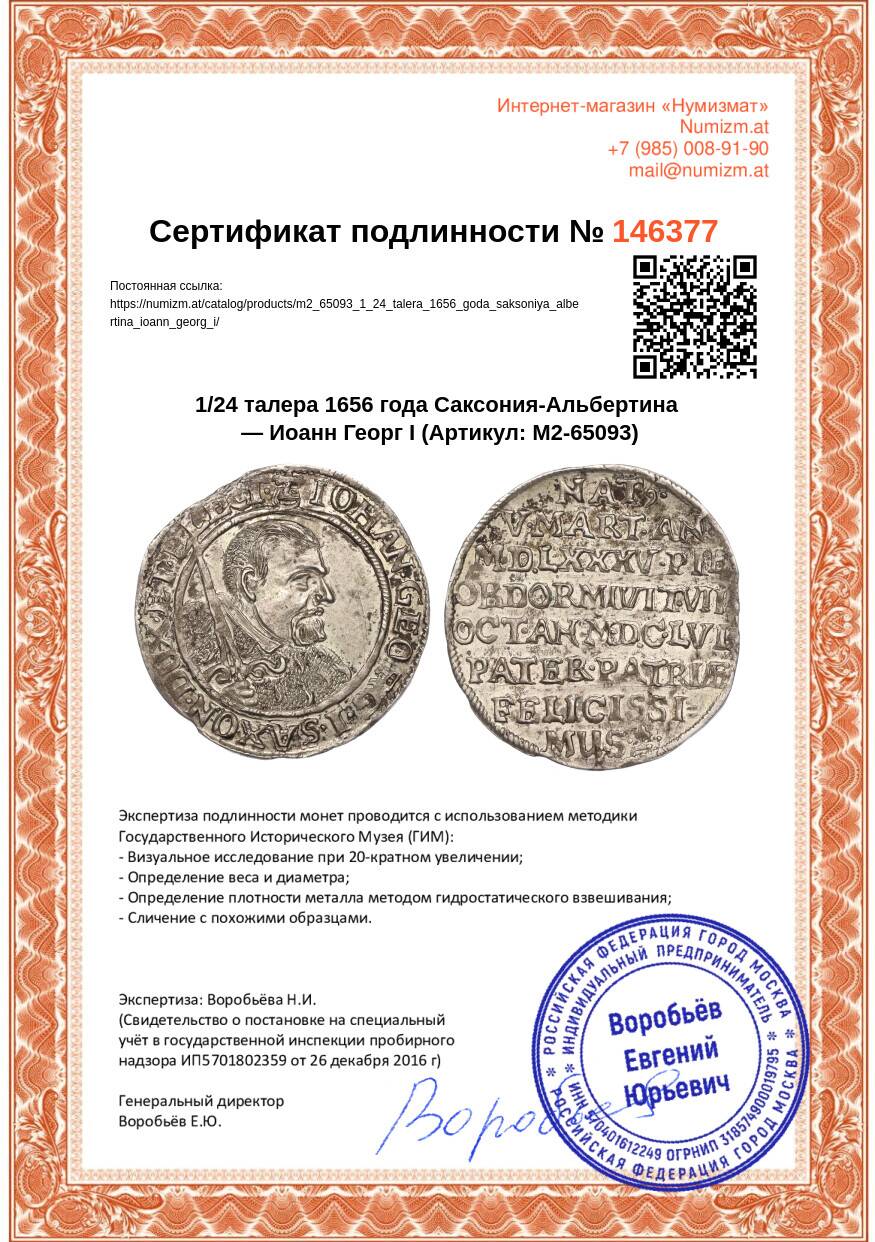 Купить 1/24 талера 1656 года Саксония-Альбертина — Иоанн Георг I по привлекательной цене можно в нашем интернет-магазине — Вам достаточно оформить заказ на сайте. Все монеты, представленные в каталоге, находятся в наличии на нашем складе.