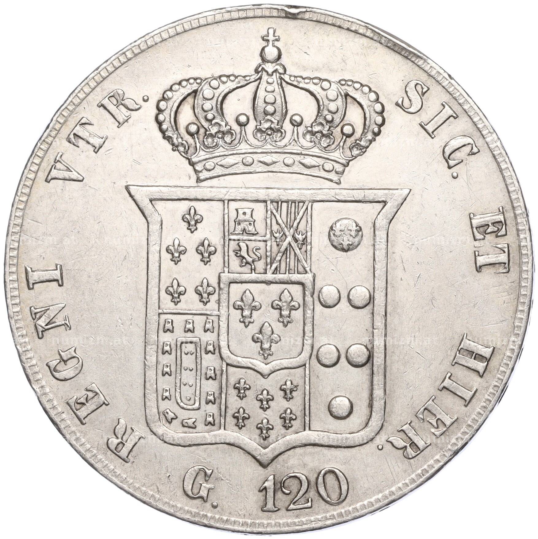 Купить 120 грано 1857 года Королевство обеих Сицилий по привлекательной цене можно в нашем интернет-магазине — Вам достаточно оформить заказ на сайте. Все монеты, представленные в каталоге, находятся в наличии на нашем складе.