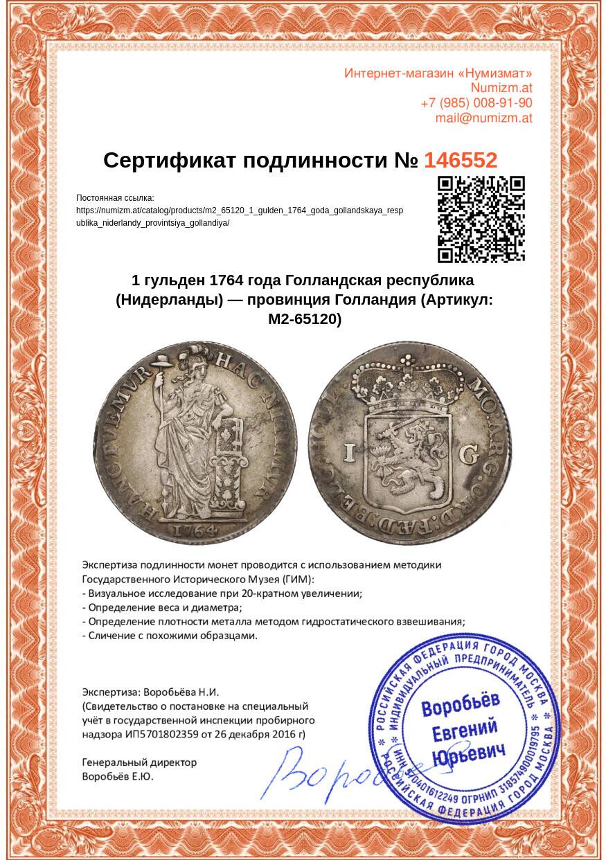 Купить 1 гульден 1764 года Голландская республика (Нидерланды) — провинция Голландия по привлекательной цене можно в нашем интернет-магазине — Вам достаточно оформить заказ на сайте. Все монеты, представленные в каталоге, находятся в наличии на нашем складе.