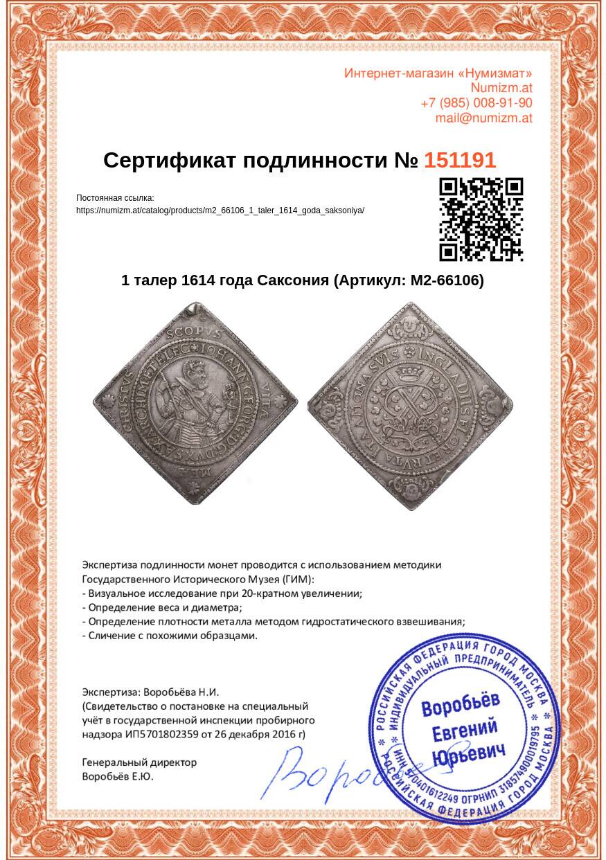 Купить 1 талер 1614 года Саксония по привлекательной цене можно в нашем интернет-магазине — Вам достаточно оформить заказ на сайте. Все монеты, представленные в каталоге, находятся в наличии на нашем складе.