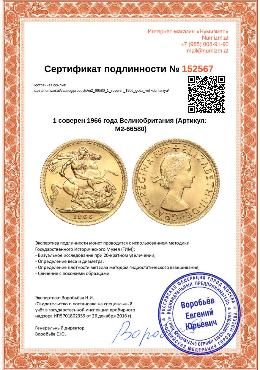 20.01.2025Интернет магазин «Нумизмат» предлагает приобрести 1 соверен 1966 года Великобритания.