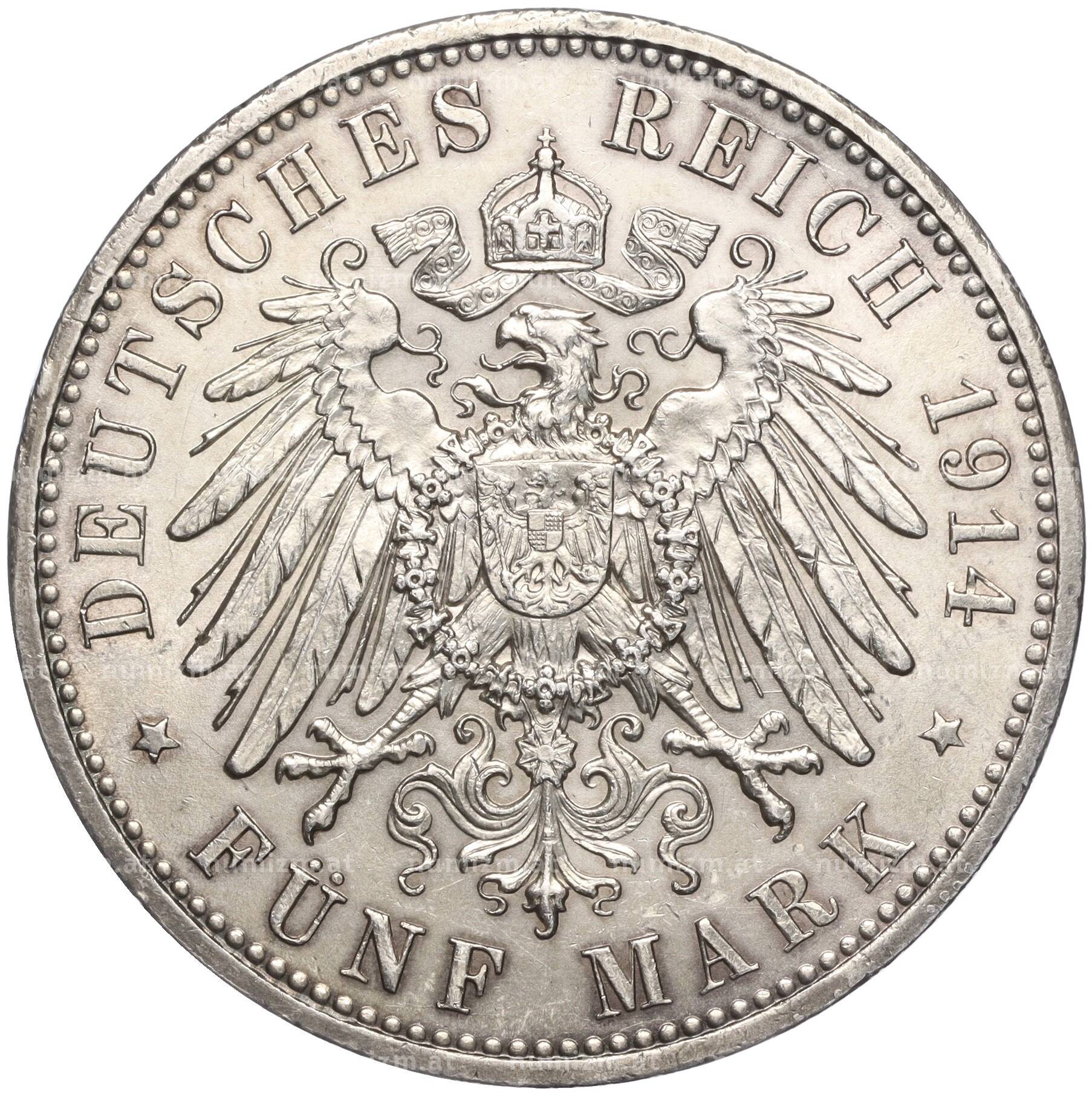 20.01.2025Интернет магазин «Нумизмат» предлагает приобрести 5 марок 1914 года Германия (Пруссия).