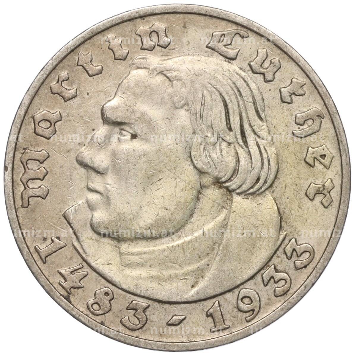 Купить 2 рейхсмарки 1933 года G Германия «450 лет со дня рождения Мартина Лютера» по привлекательной цене можно в нашем интернет-магазине — Вам достаточно оформить заказ на сайте. Все монеты, представленные в каталоге, находятся в наличии на нашем складе.