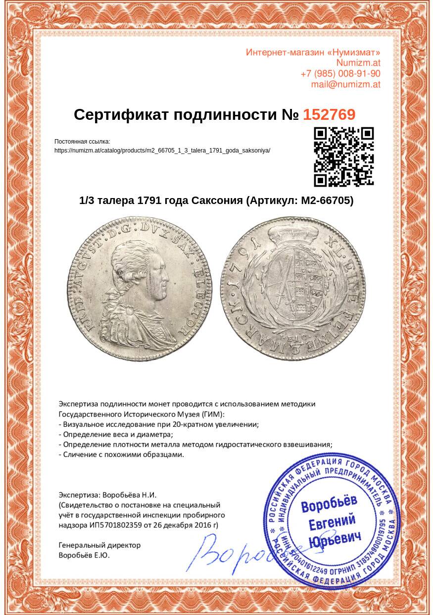 Купить 1/3 талера 1791 года Саксония по привлекательной цене можно в нашем интернет-магазине — Вам достаточно оформить заказ на сайте. Все монеты, представленные в каталоге, находятся в наличии на нашем складе.