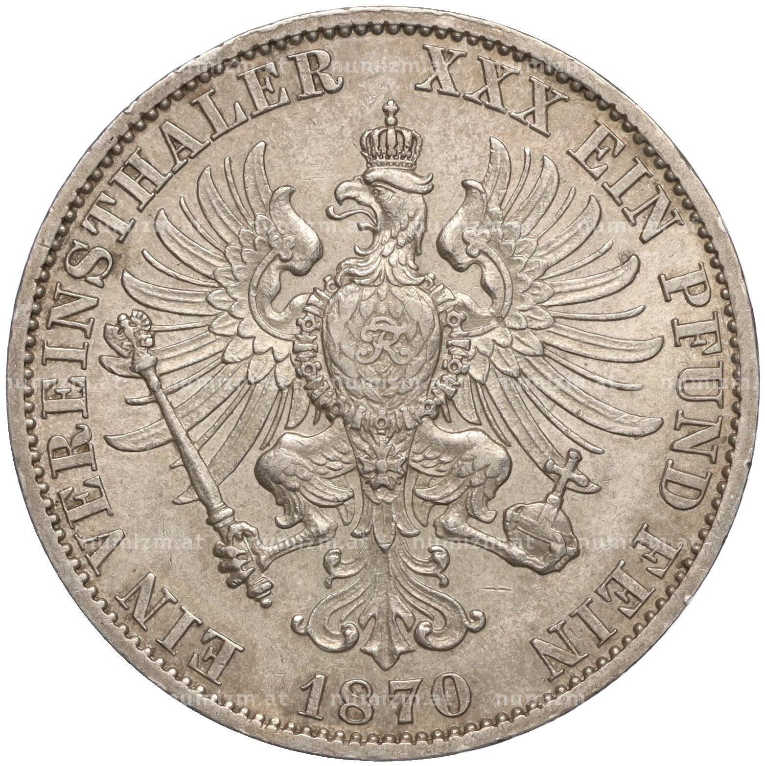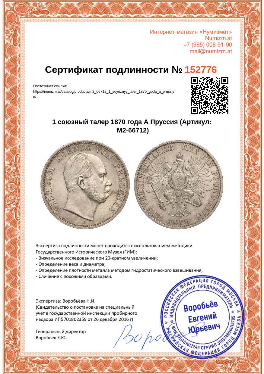 Купить 1 союзный талер 1870 года А Пруссия по привлекательной цене можно в нашем интернет-магазине — Вам достаточно оформить заказ на сайте. Все монеты, представленные в каталоге, находятся в наличии на нашем складе.