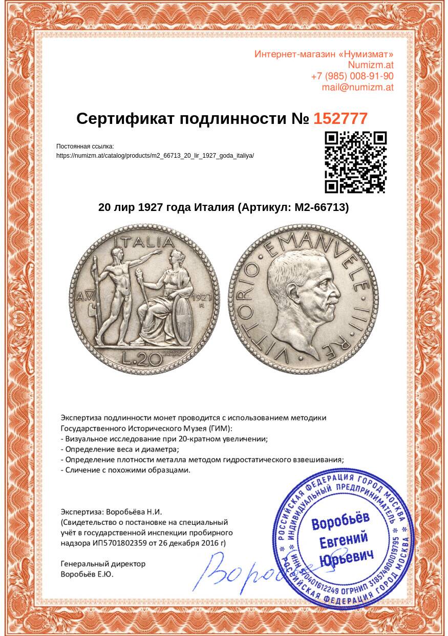 Купить 20 лир 1927 года Италия по привлекательной цене можно в нашем интернет-магазине — Вам достаточно оформить заказ на сайте. Все монеты, представленные в каталоге, находятся в наличии на нашем складе.
