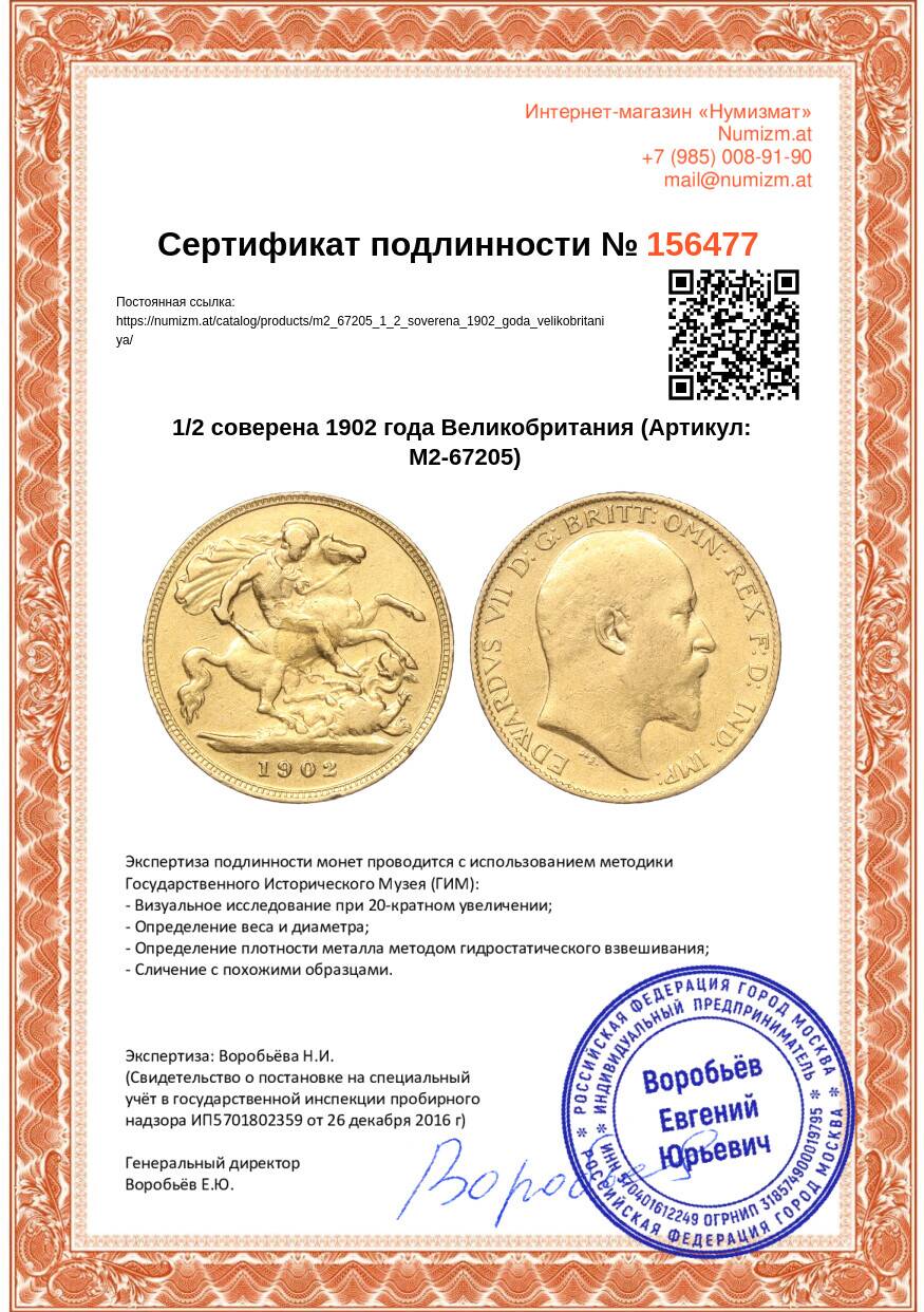 20.01.2025Интернет магазин «Нумизмат» предлагает приобрести 1/2 соверена 1902 года Великобритания.