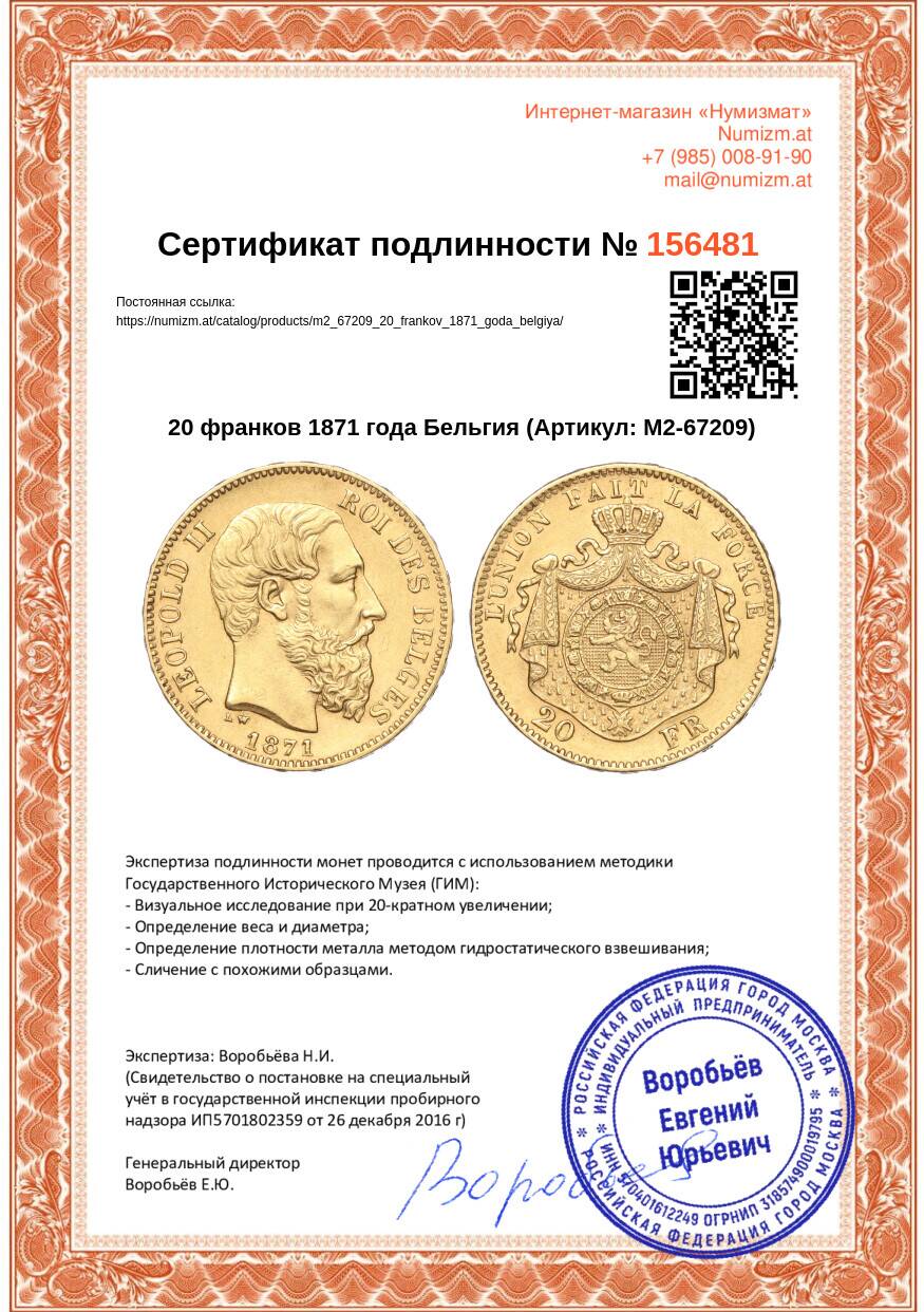 Купить 20 франков 1871 года Бельгия по привлекательной цене можно в нашем интернет-магазине — Вам достаточно оформить заказ на сайте. Все монеты, представленные в каталоге, находятся в наличии на нашем складе.