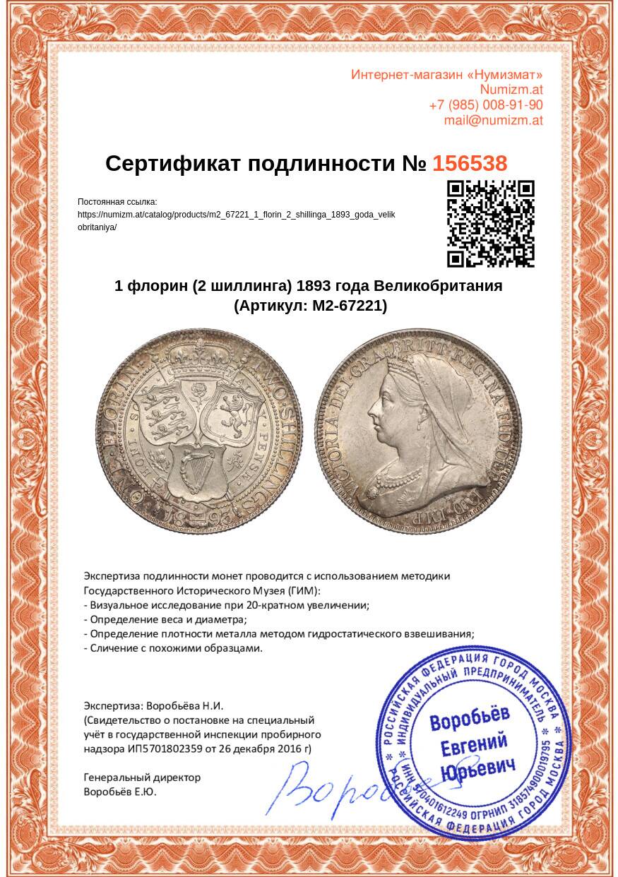 20.01.2025Интернет магазин «Нумизмат» предлагает приобрести 1 флорин (2 шиллинга) 1893 года Великобритания.
