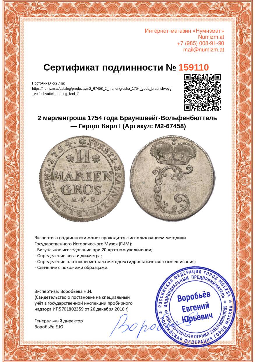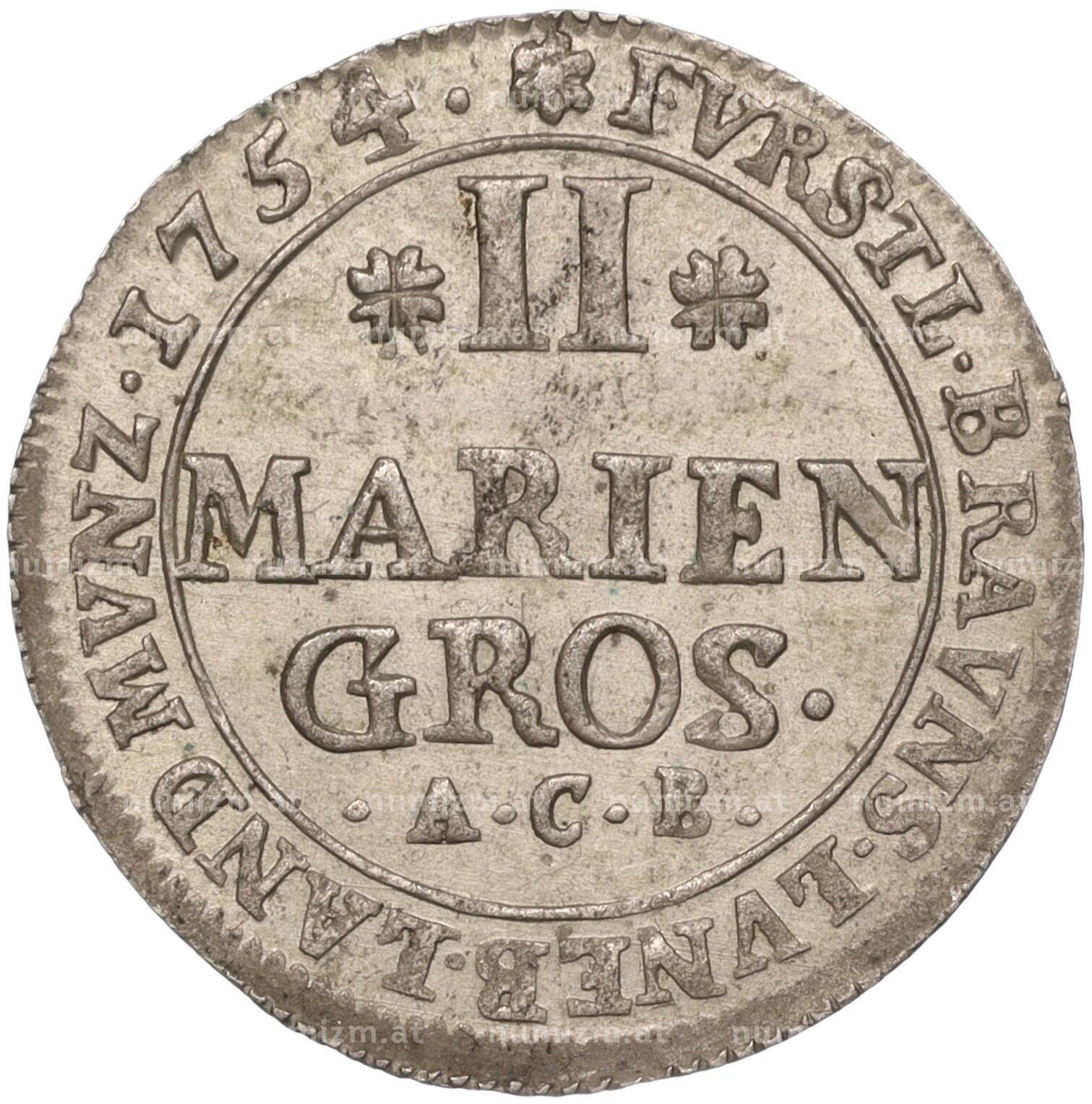 Купить 2 мариенгроша 1754 года Брауншвейг-Вольфенбюттель — Герцог Карл I по привлекательной цене можно в нашем интернет-магазине — Вам достаточно оформить заказ на сайте. Все монеты, представленные в каталоге, находятся в наличии на нашем складе.