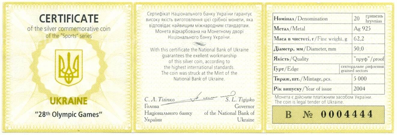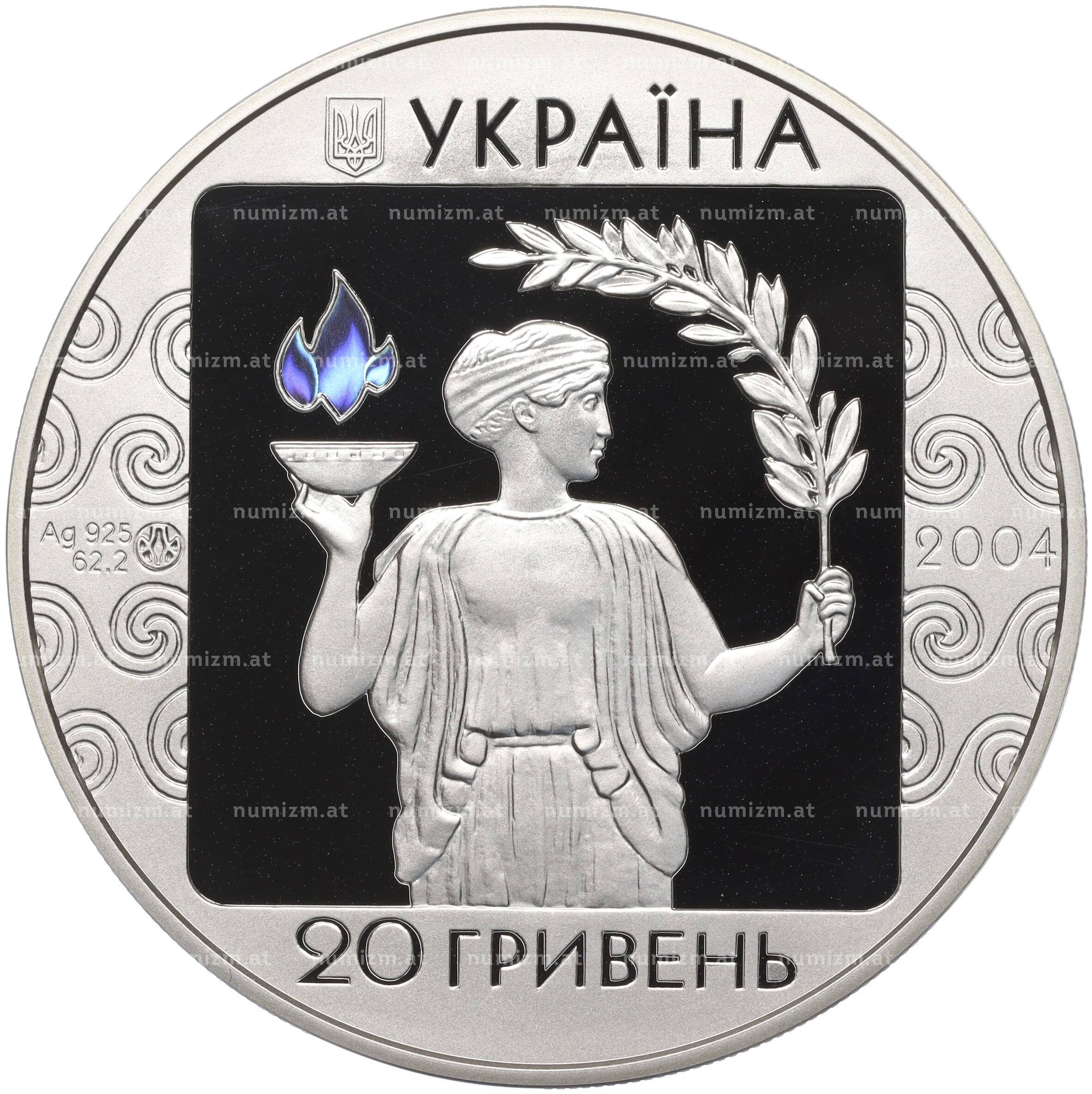 Купить 20 гривен 2004 года Украина «XXVIII летние Олимпийские Игры 2004 в Афинах» по привлекательной цене можно в нашем интернет-магазине — Вам достаточно оформить заказ на сайте. Все монеты, представленные в каталоге, находятся в наличии на нашем складе.