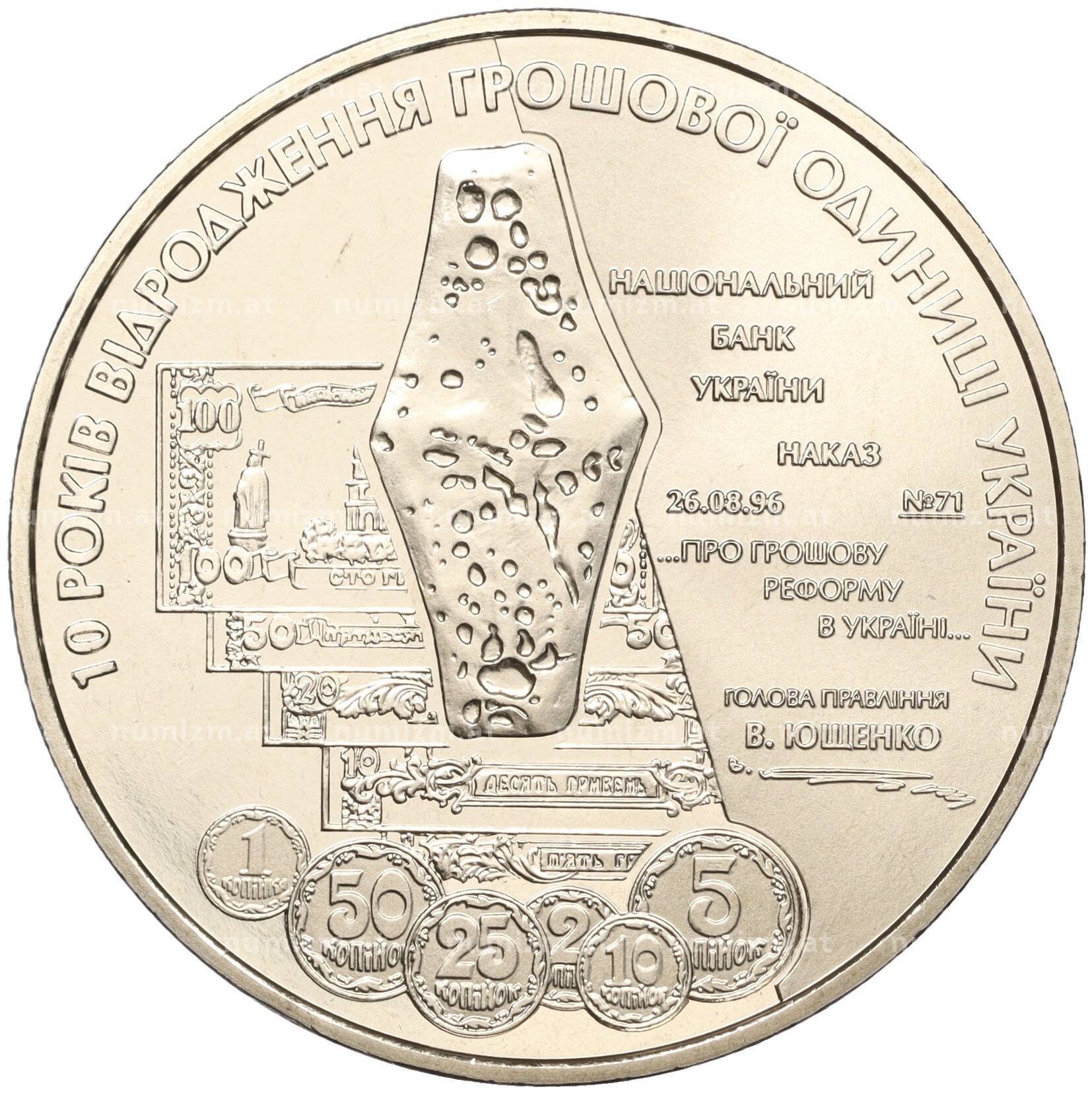 20.01.2025Интернет магазин «Нумизмат» предлагает приобрести 5 гривен 2006 года Украина «10 лет реформе денежной системы».