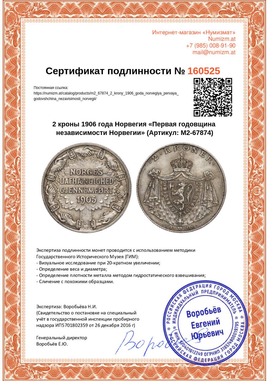 Купить 2 кроны 1906 года Норвегия «Первая годовщина независимости Норвегии» по привлекательной цене можно в нашем интернет-магазине — Вам достаточно оформить заказ на сайте. Все монеты, представленные в каталоге, находятся в наличии на нашем складе.