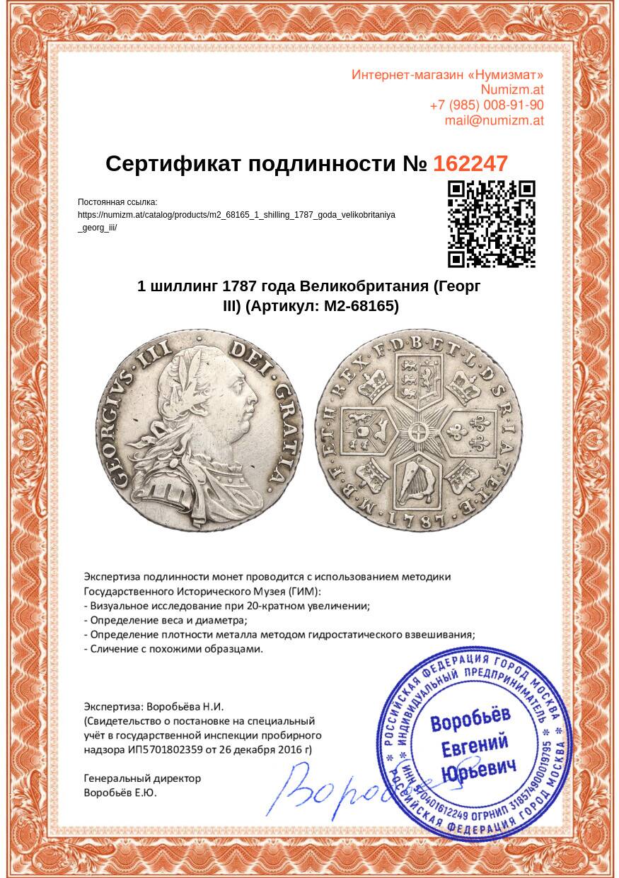 Купить 1 шиллинг 1787 года Великобритания (Георг III) по привлекательной цене можно в нашем интернет-магазине — Вам достаточно оформить заказ на сайте. Все монеты, представленные в каталоге, находятся в наличии на нашем складе.