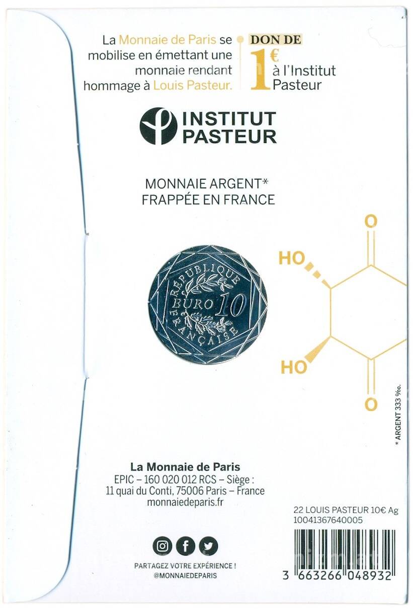 Купить 10 евро 2022 года Франция «200 лет со дня рождения Луи Пастера» (в буклете) по привлекательной цене можно в нашем интернет-магазине — Вам достаточно оформить заказ на сайте. Все монеты, представленные в каталоге, находятся в наличии на нашем складе.