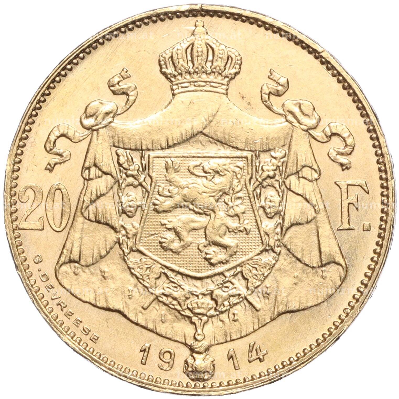 Купить 20 франков 1914 года Бельгия — легенда на французском (DES BELGES) по привлекательной цене можно в нашем интернет-магазине — Вам достаточно оформить заказ на сайте. Все монеты, представленные в каталоге, находятся в наличии на нашем складе.