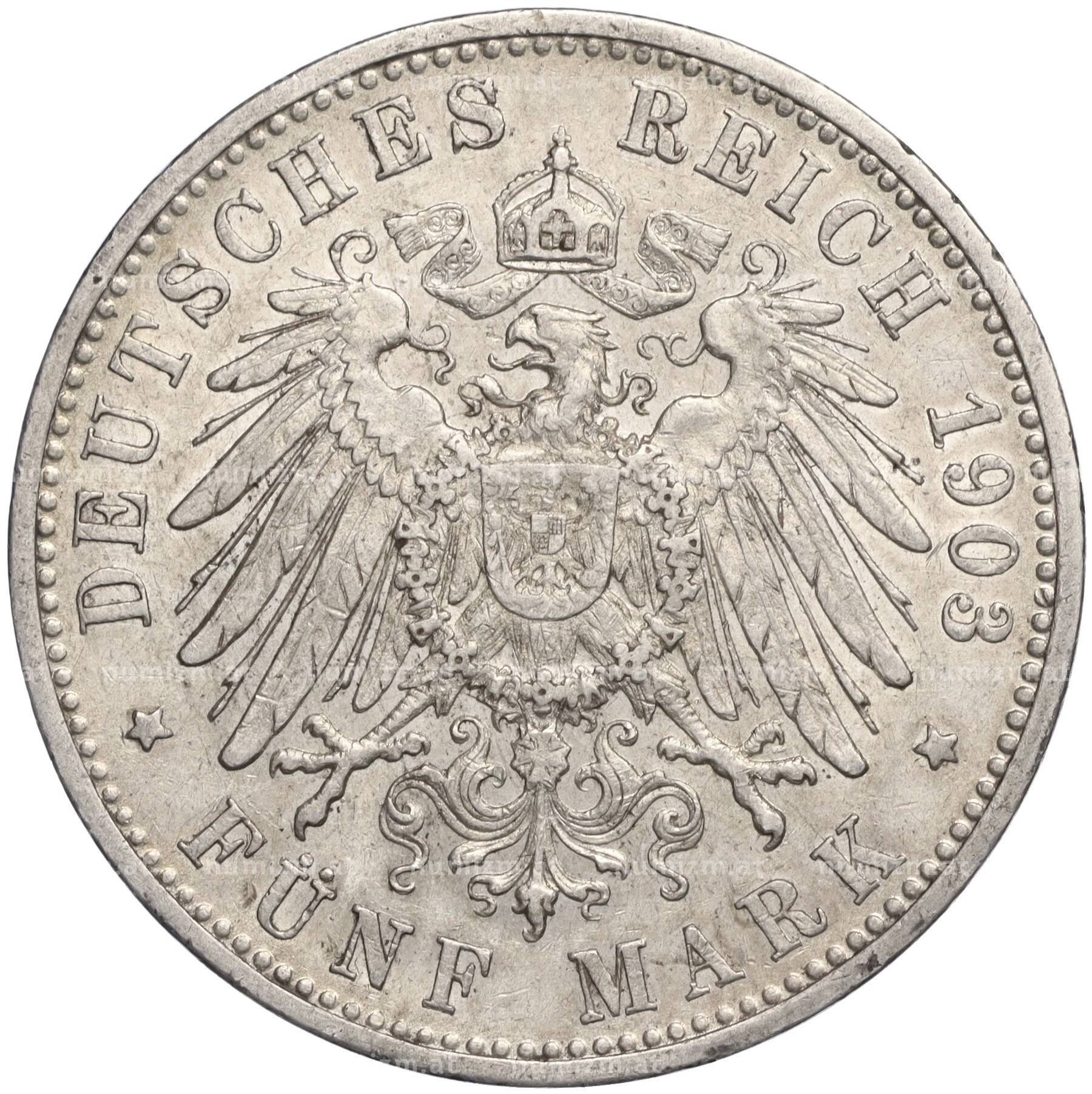 20.01.2025Интернет магазин «Нумизмат» предлагает приобрести 5 марок 1903 года Германия (Вюртемберг).