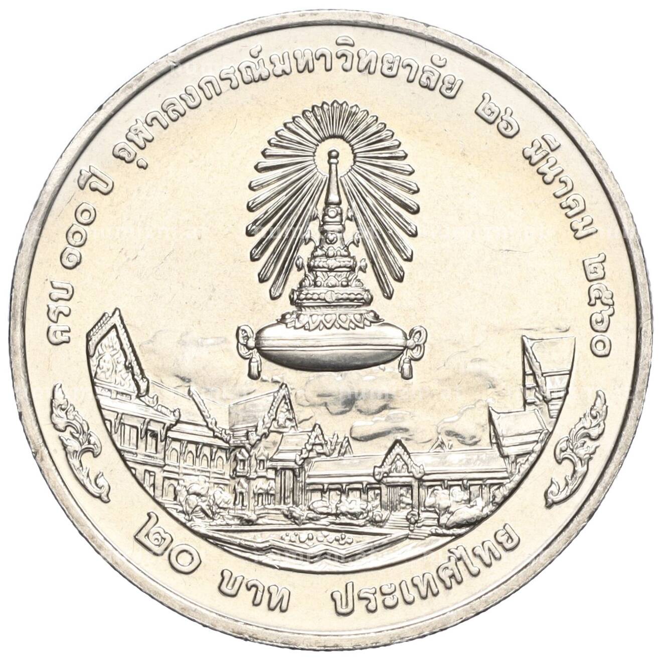 • Монета 20 бат 2017 года (BE 2560) Таиланд «100 лет Чулалонгкорнскому университету» (Артикул: M2-72355) — Фото №1 Монета 20 бат 2017 года (BE 2560) Таиланд «100 лет Чулалонгкорнскому университету» (Артикул: M2-72355) — Фото №2