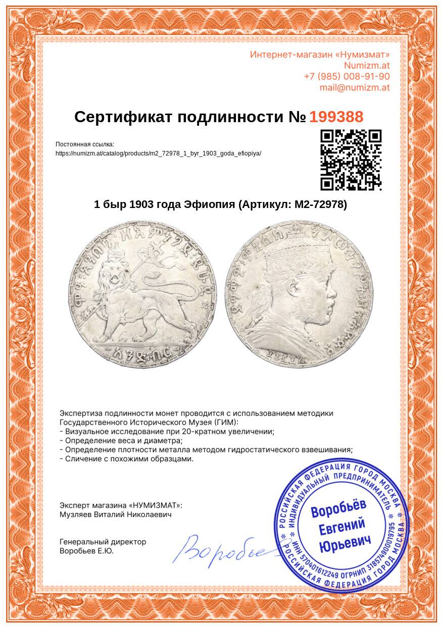 Купить 1 быр 1903 года Эфиопия по привлекательной цене можно в нашем интернет-магазине — Вам достаточно оформить заказ на сайте. Все монеты, представленные в каталоге, находятся в наличии на нашем складе.