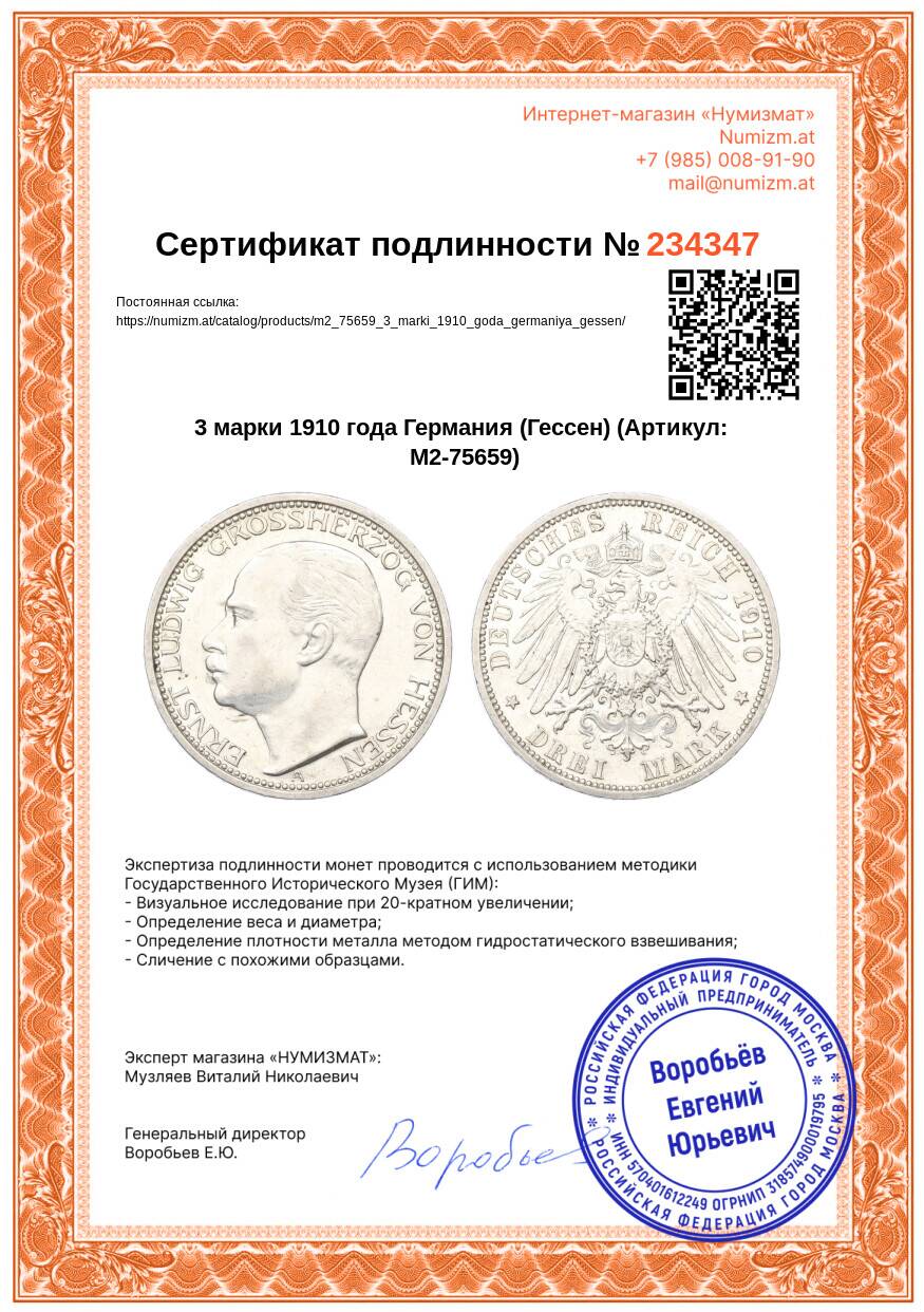 20.01.2025Интернет магазин «Нумизмат» предлагает приобрести 3 марки 1910 года Германия (Гессен).