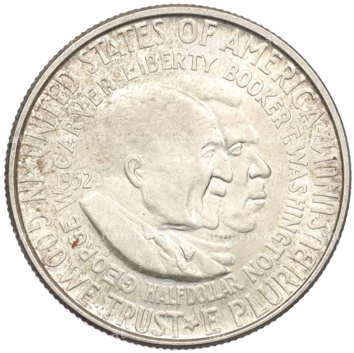 Монета 1/2 доллара (50 центов) 1952 года США «Джордж Вашингтон Карвер и Букер Талиафер Вашингтон» (Артикул: M2-75762): подробные характеристики, качественные фотографии в высоком разрешении, низкая цена.