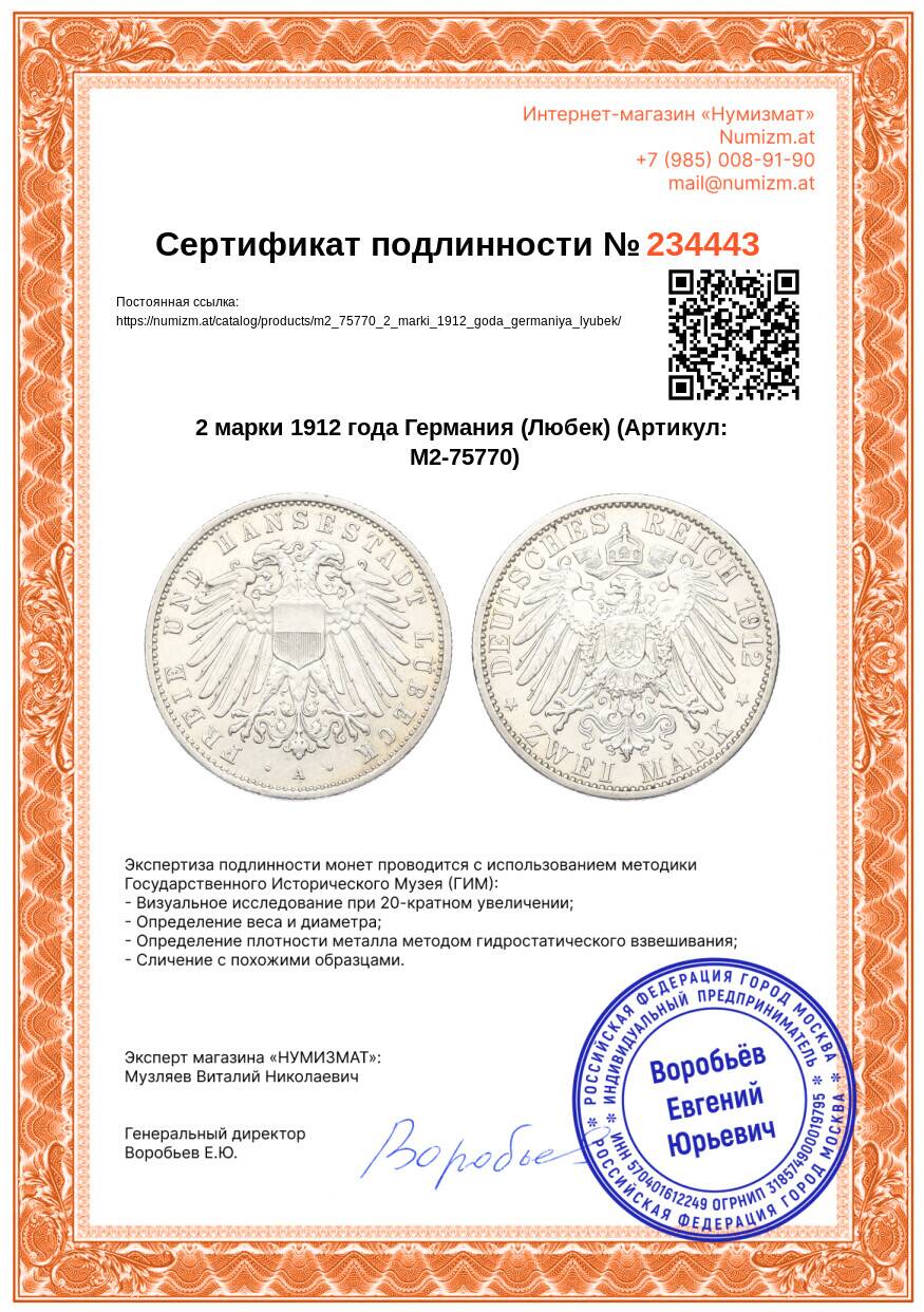 20.01.2025Интернет магазин «Нумизмат» предлагает приобрести 2 марки 1912 года Германия (Любек).
