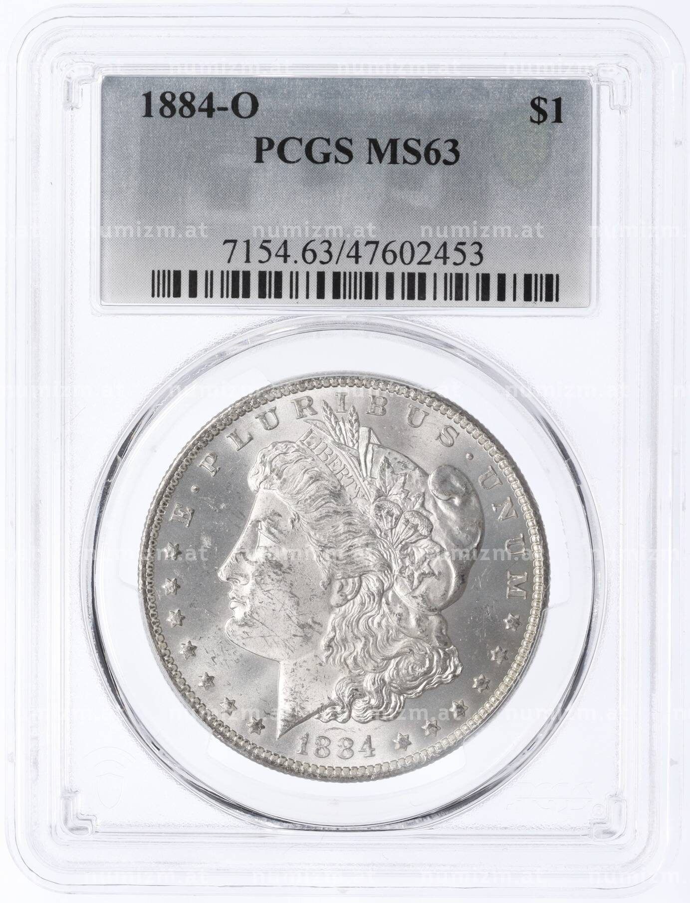 Купить 1 доллар 1884 года О США — в слабе PCGS (MS63) по привлекательной цене можно в нашем интернет-магазине — Вам достаточно оформить заказ на сайте. Все монеты, представленные в каталоге, находятся в наличии на нашем складе.