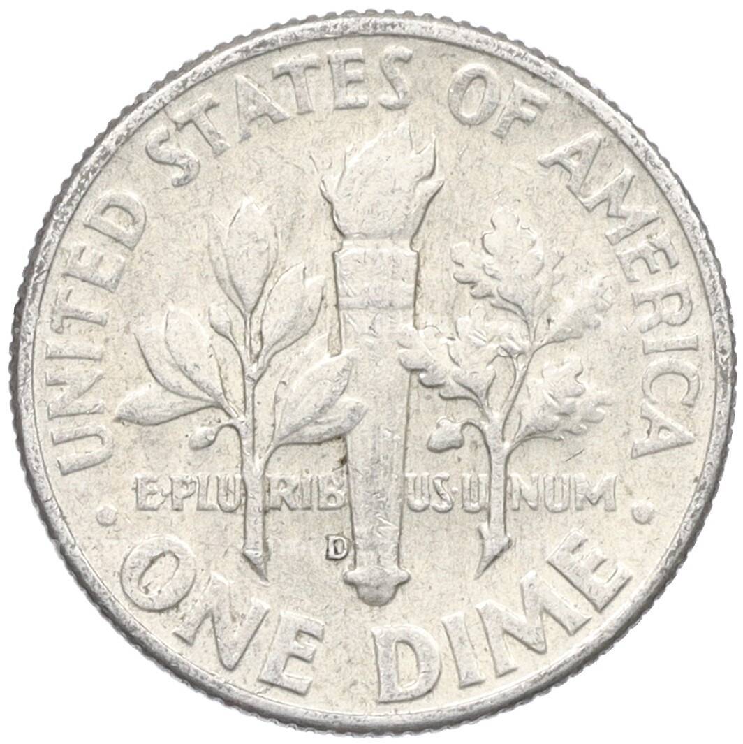Монета 1 дайм (10 центов) 1964 года D США (Артикул: M2-76097): подробные характеристики, качественные фотографии в высоком разрешении, низкая цена.
