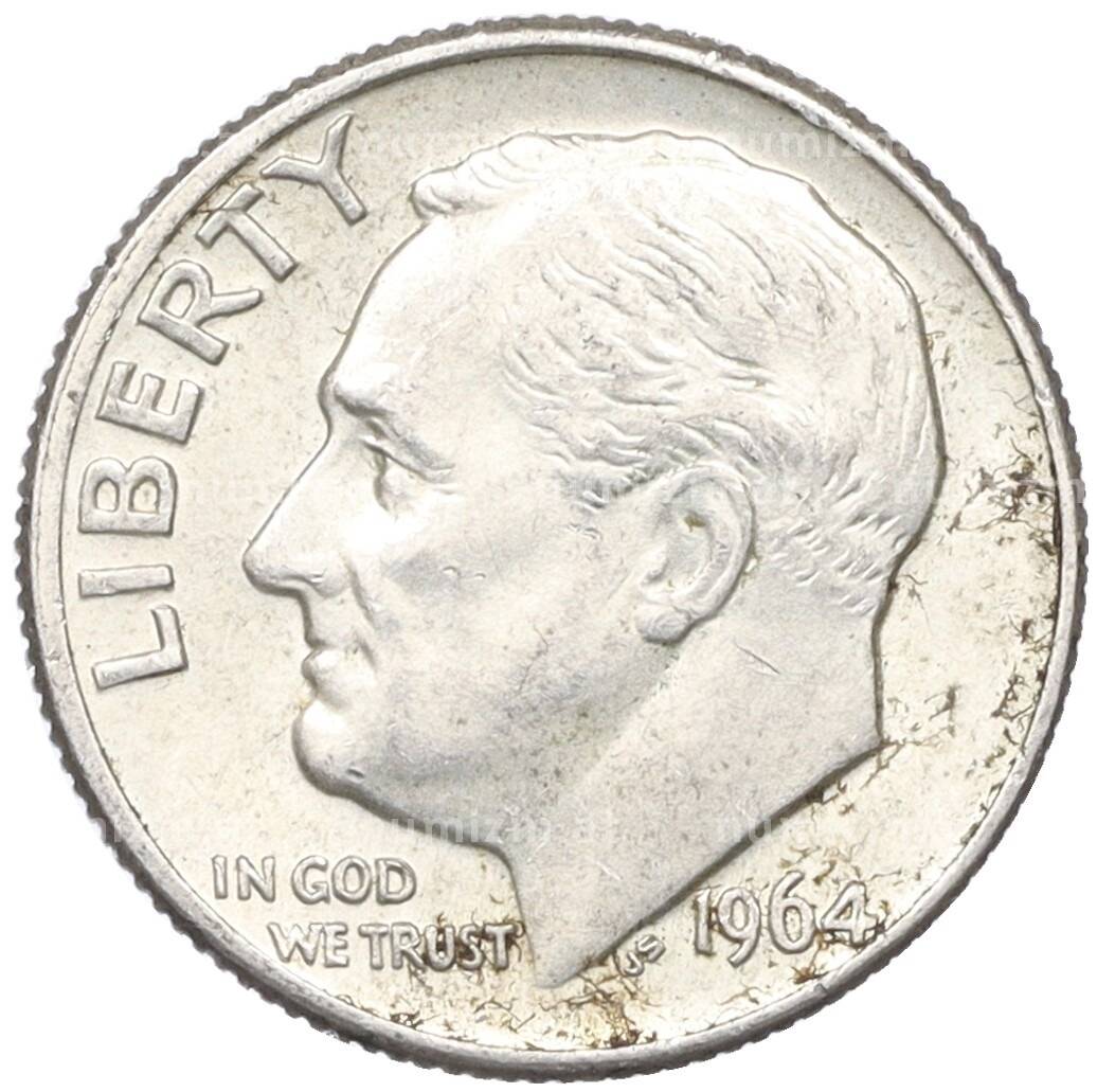 Монета 1 дайм (10 центов) 1964 года D США (Артикул: M2-76297): подробные характеристики, качественные фотографии в высоком разрешении, низкая цена.