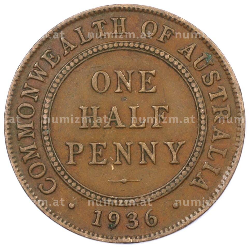 Монета 1/2 пенни 1936 года Австралия (Артикул: M2-77312): подробные характеристики, качественные фотографии в высоком разрешении, низкая цена.