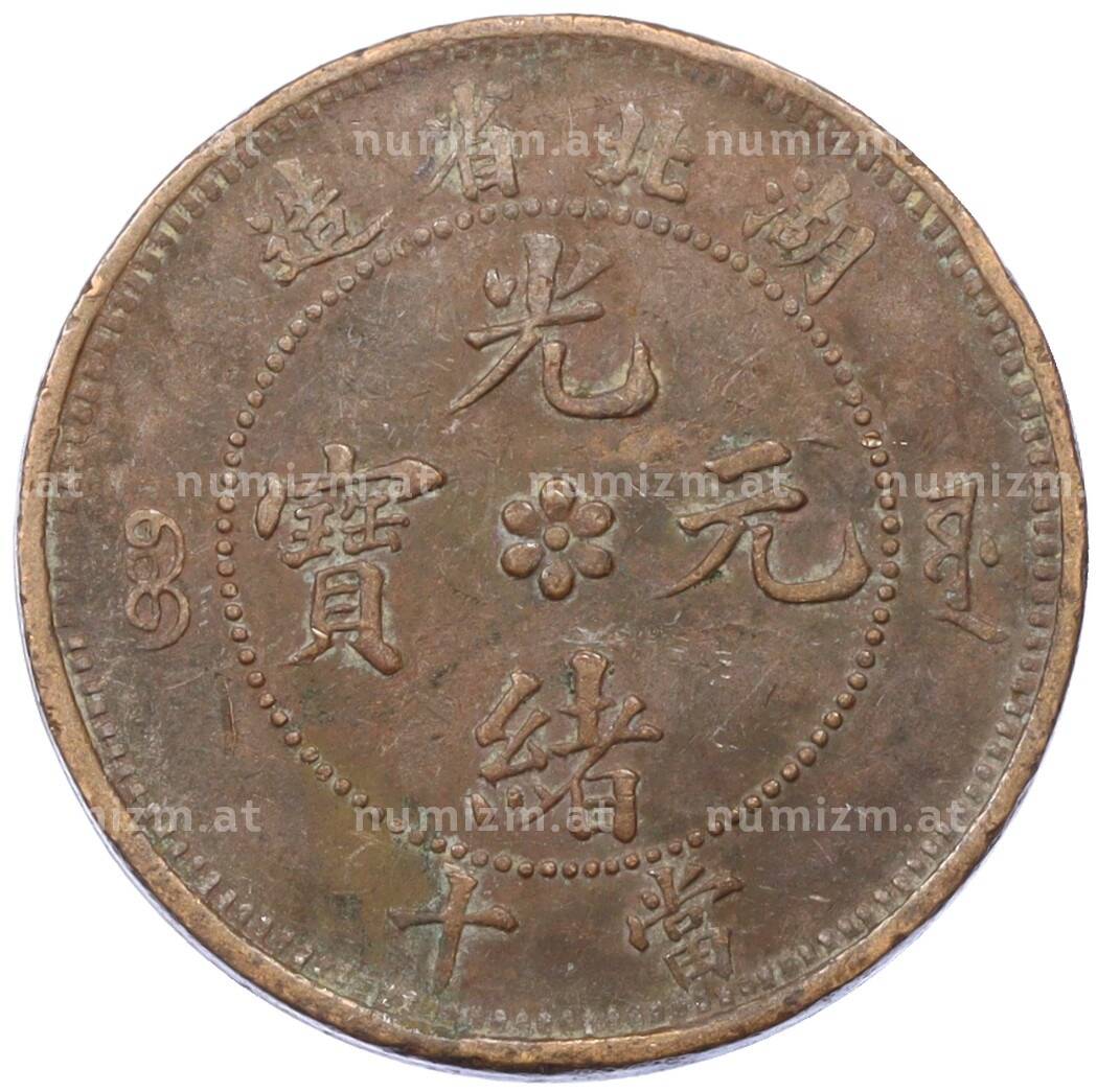 Купить 10 кэш 1902-1905 года Китай — провинция Хубэй по привлекательной цене можно в нашем интернет-магазине — Вам достаточно оформить заказ на сайте. Все монеты, представленные в каталоге, находятся в наличии на нашем складе.