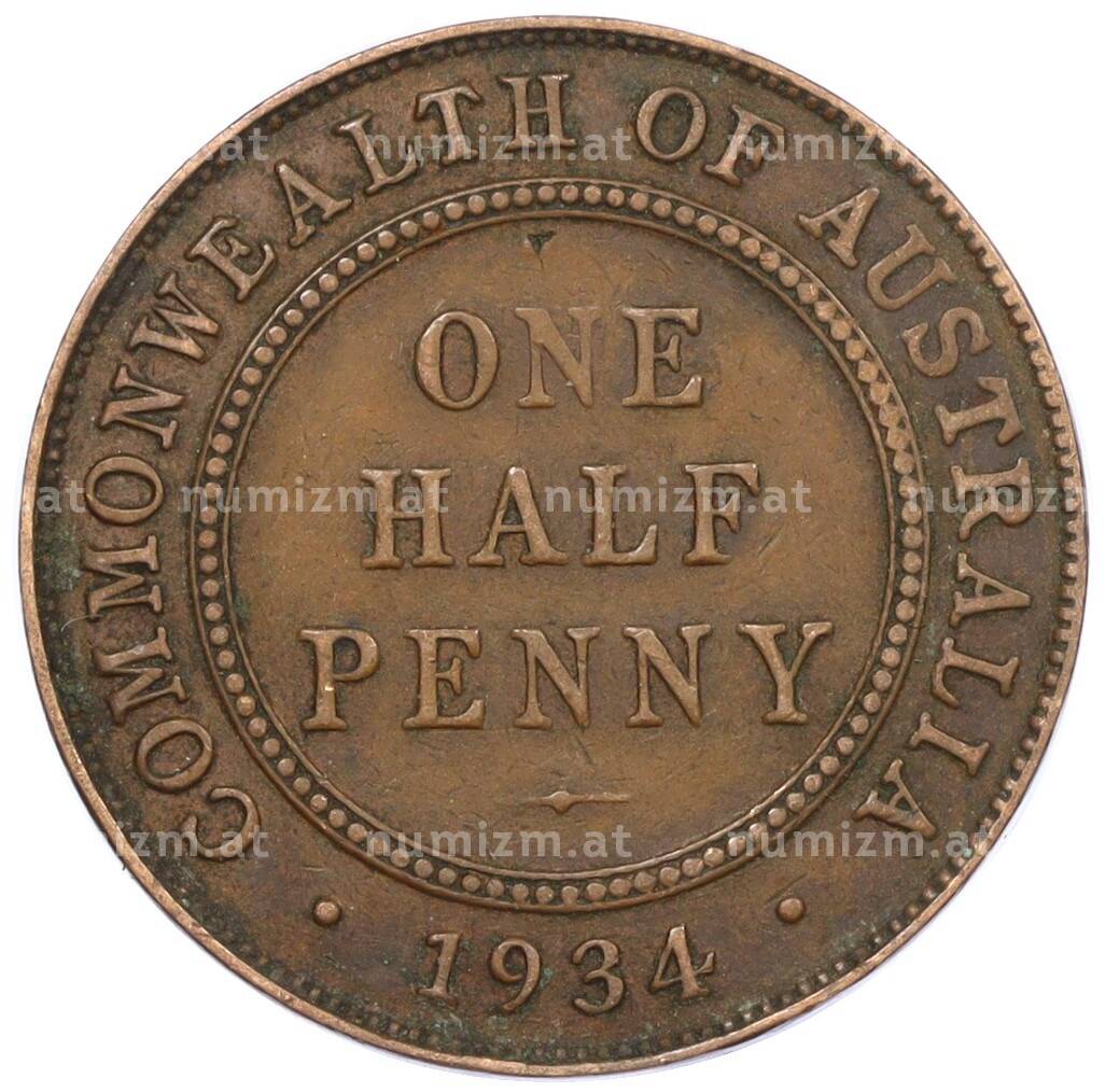Монета 1/2 пенни 1934 года Австралия (Артикул: M2-78406): подробные характеристики, качественные фотографии в высоком разрешении, низкая цена.