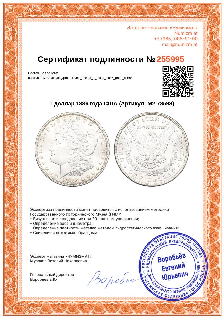 Купить 1 доллар 1886 года США по привлекательной цене можно в нашем интернет-магазине — Вам достаточно оформить заказ на сайте. Все монеты, представленные в каталоге, находятся в наличии на нашем складе.