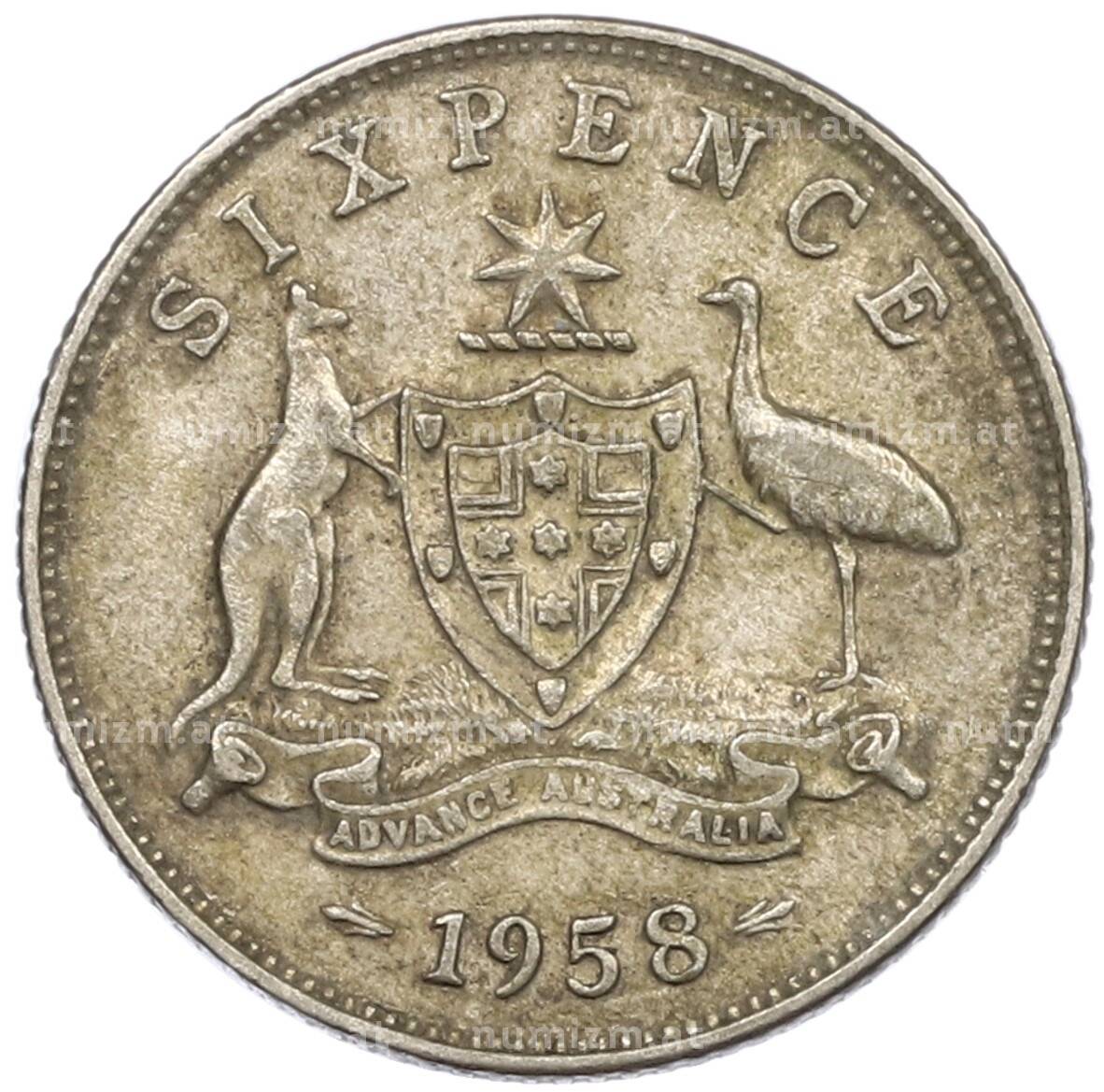 Купить 6 пенсов 1958 года Австралия по привлекательной цене можно в нашем интернет-магазине — Вам достаточно оформить заказ на сайте. Все монеты, представленные в каталоге, находятся в наличии на нашем складе.