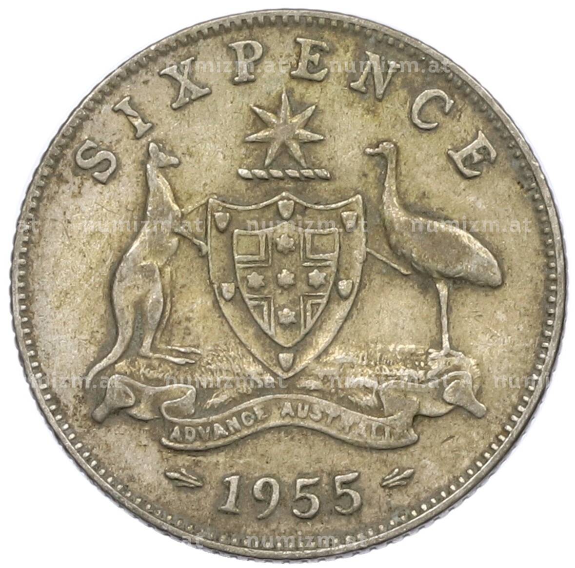 Монета 6 пенсов 1955 года Австралия (Артикул: M2-78843): подробные характеристики, качественные фотографии в высоком разрешении, низкая цена.