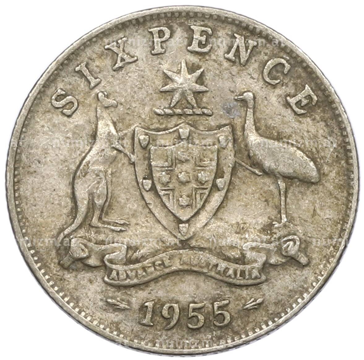 Купить 6 пенсов 1955 года Австралия по привлекательной цене можно в нашем интернет-магазине — Вам достаточно оформить заказ на сайте. Все монеты, представленные в каталоге, находятся в наличии на нашем складе.