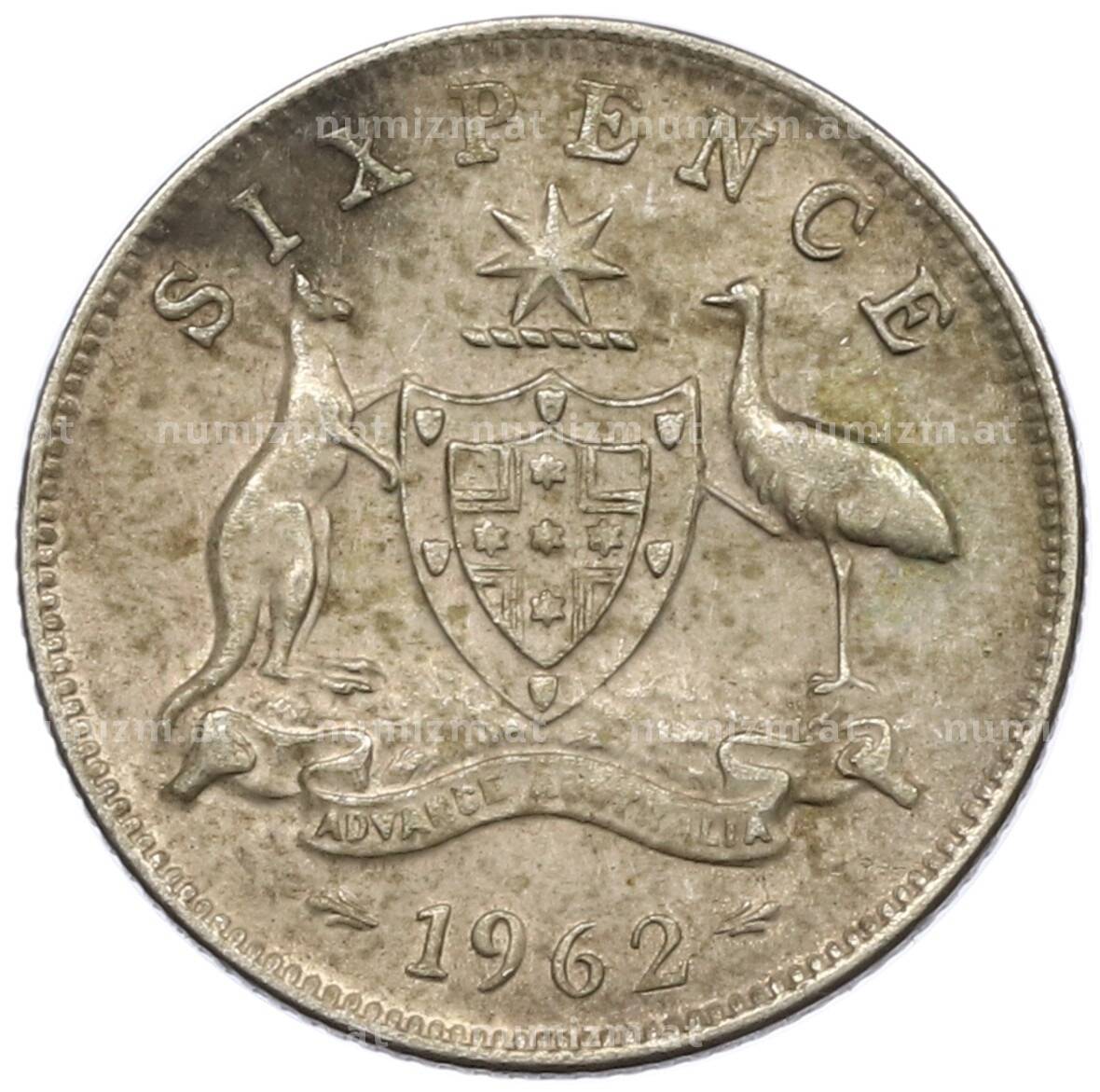 Монета 6 пенсов 1962 года Австралия (Артикул: M2-78860): подробные характеристики, качественные фотографии в высоком разрешении, низкая цена.