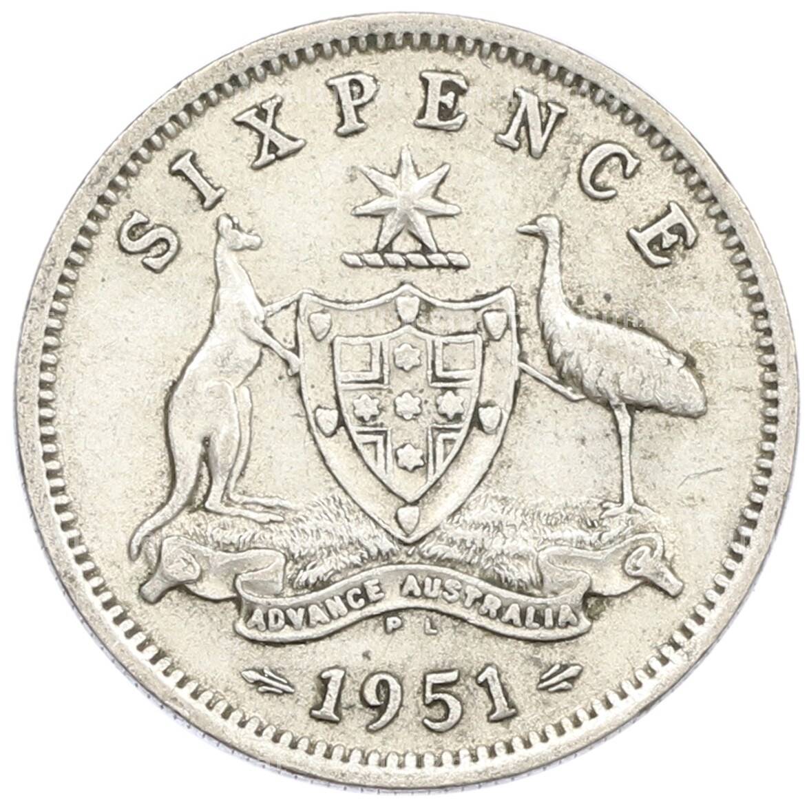Монета 6 пенсов 1951 года Австралия (Артикул: M2-79601): подробные характеристики, качественные фотографии в высоком разрешении, низкая цена.