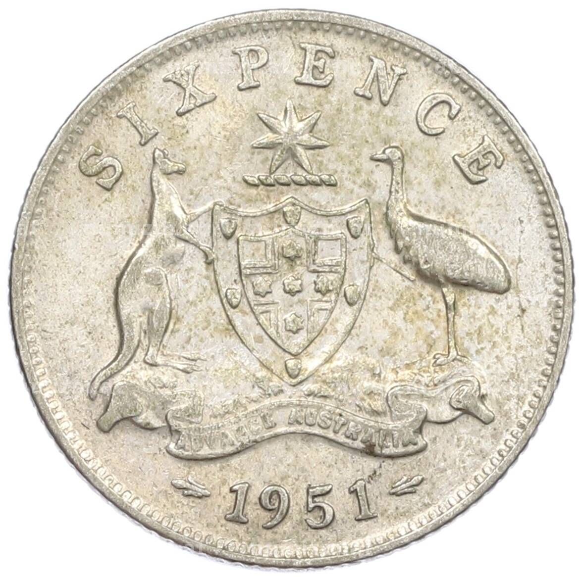 Монета 6 пенсов 1951 года Австралия (Артикул: M2-79620): подробные характеристики, качественные фотографии в высоком разрешении, низкая цена.